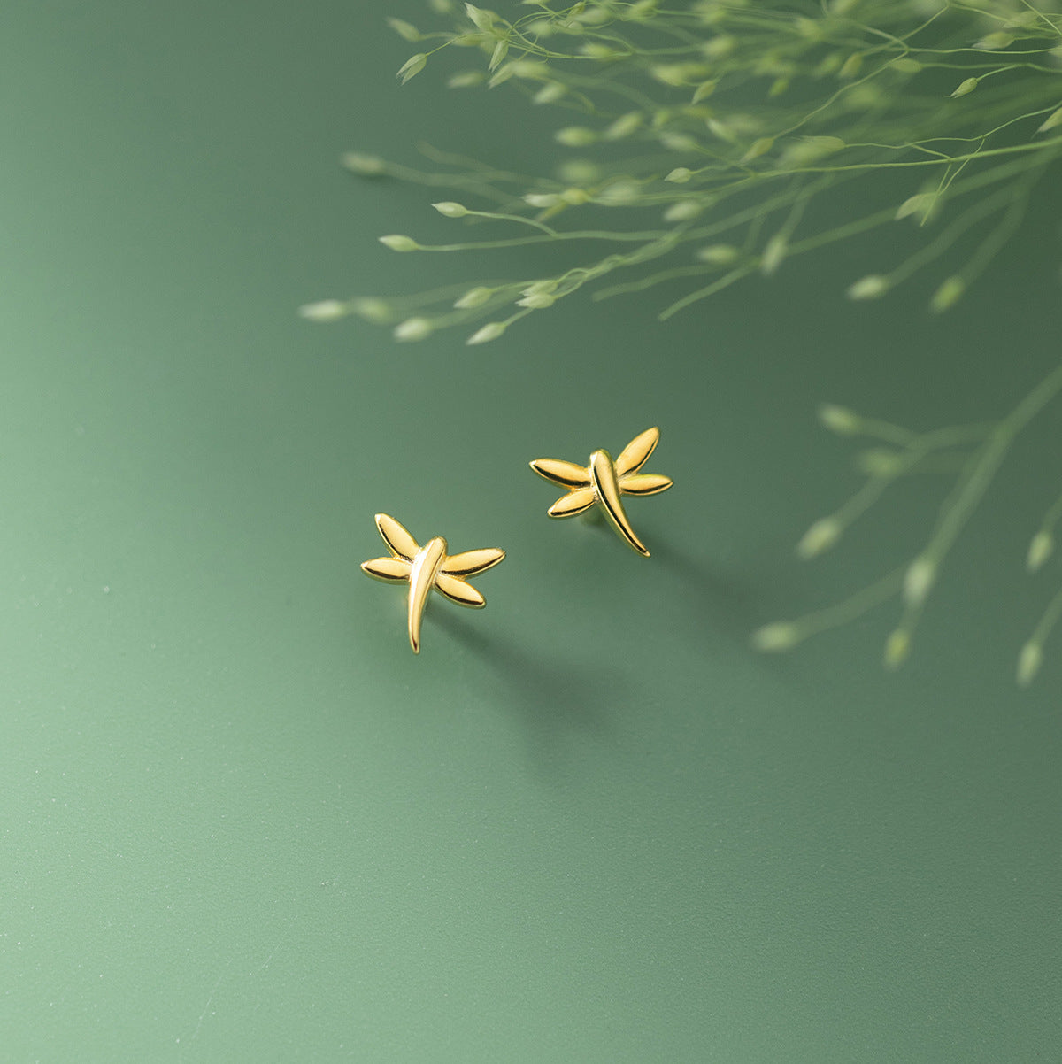 925 sterling silver simple mini dragonfly stud earrings with screw back (5 pairs)