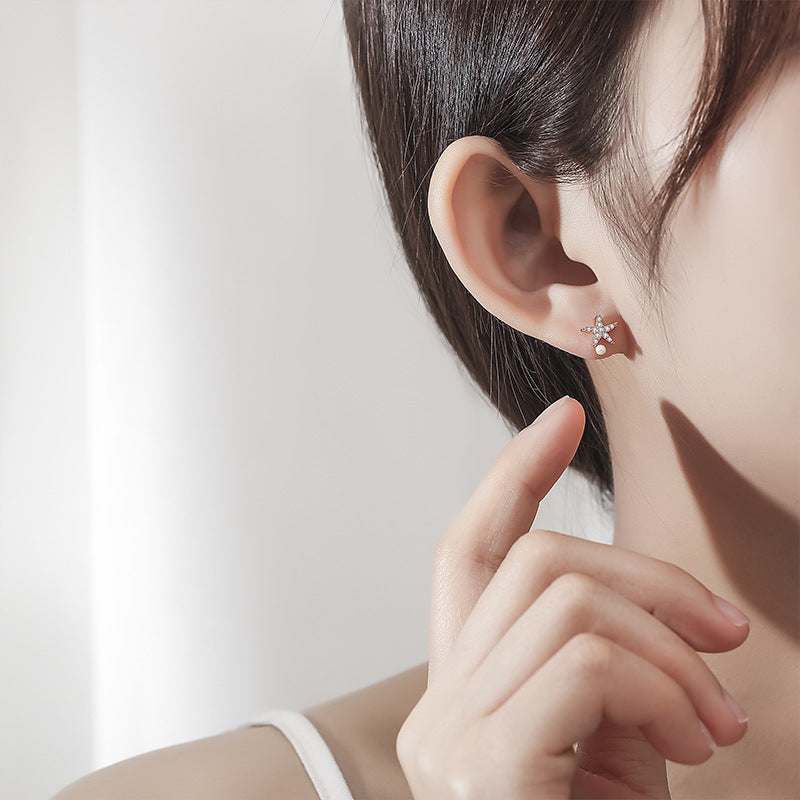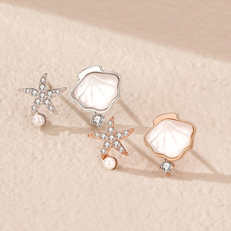 925 sterling silver simple shell starfish pearl asymmetrical stud earrings (5 pairs)