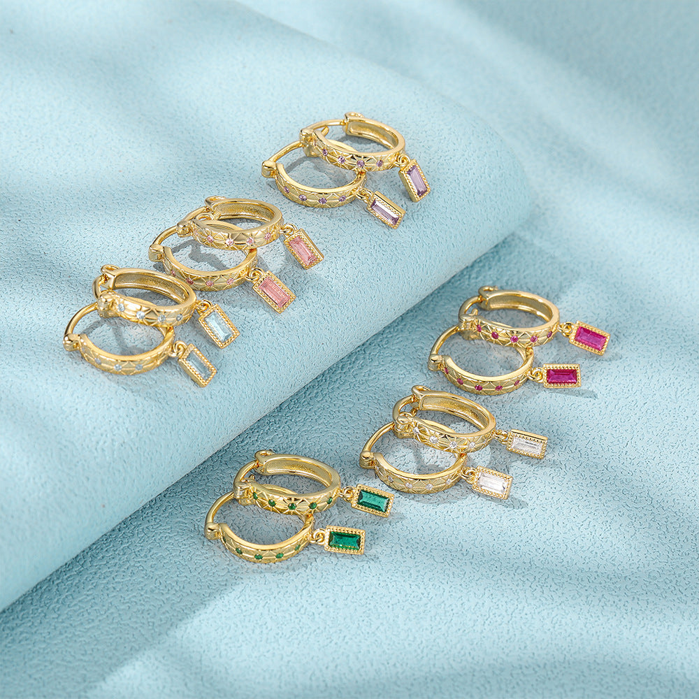 925 sterling silver square color zircon hoop earrings (5 pairs)