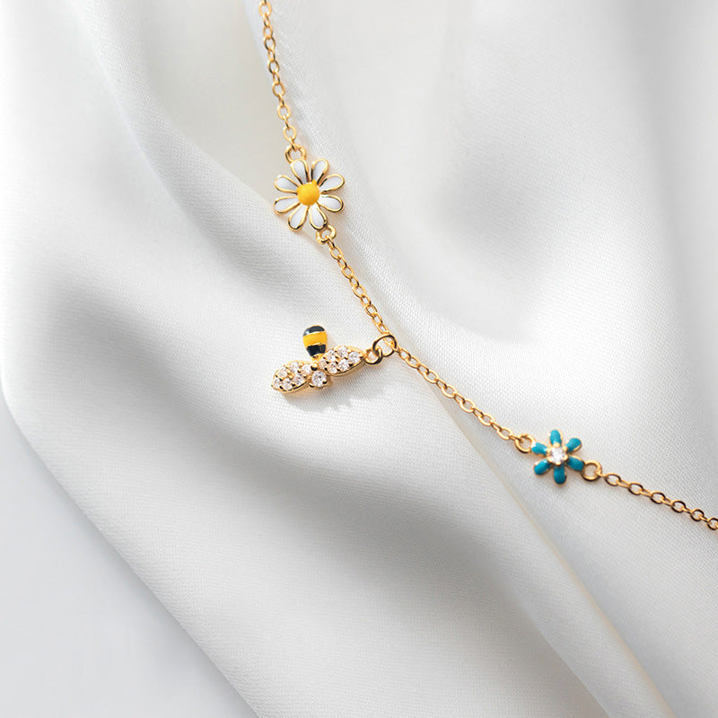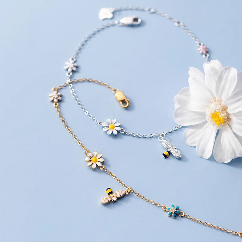 925 sterling silver sweet daisy flower bee zircon charm bracelet Set of 5