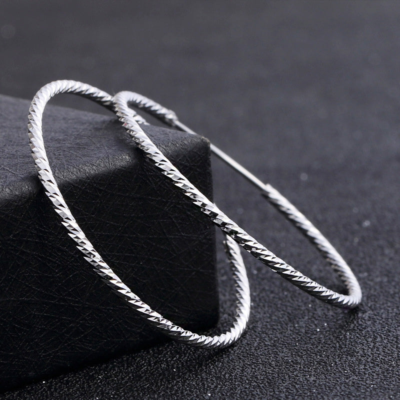 925 sterling silver texture piercing loop 37mm big hoop earrings (5 pairs)
