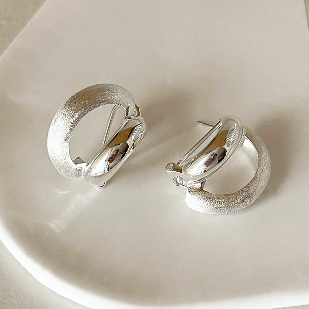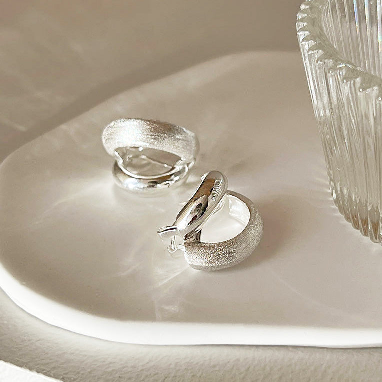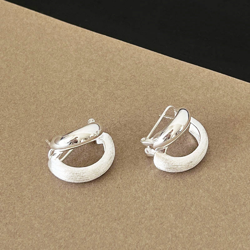 925 sterling silver two-tone double-layer frosted hoop pierced earrings (5 pairs)