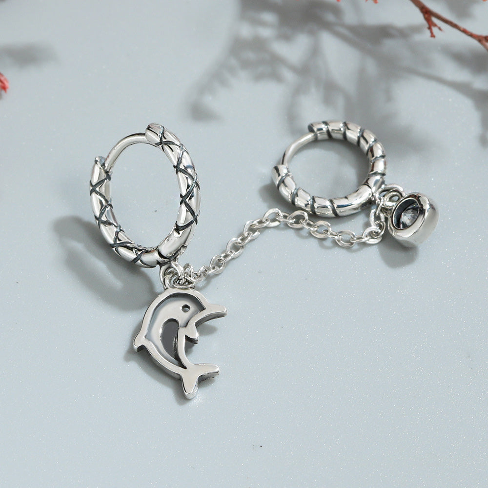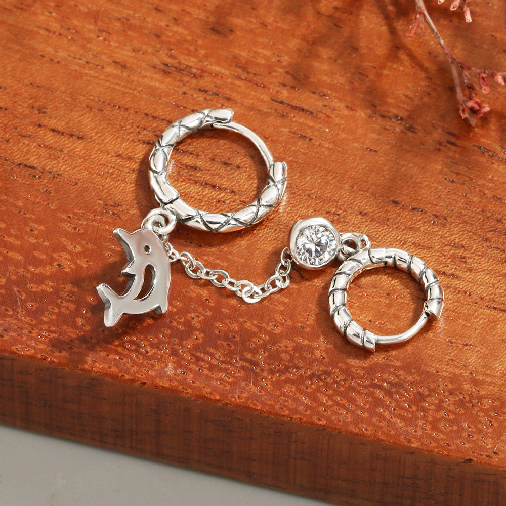 925 sterling silver vintage dolphin double hoop chain earrings (5 pcs)