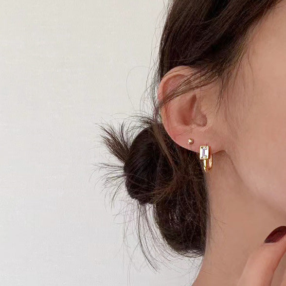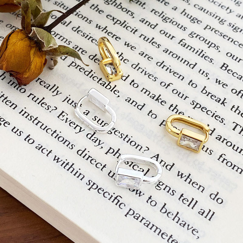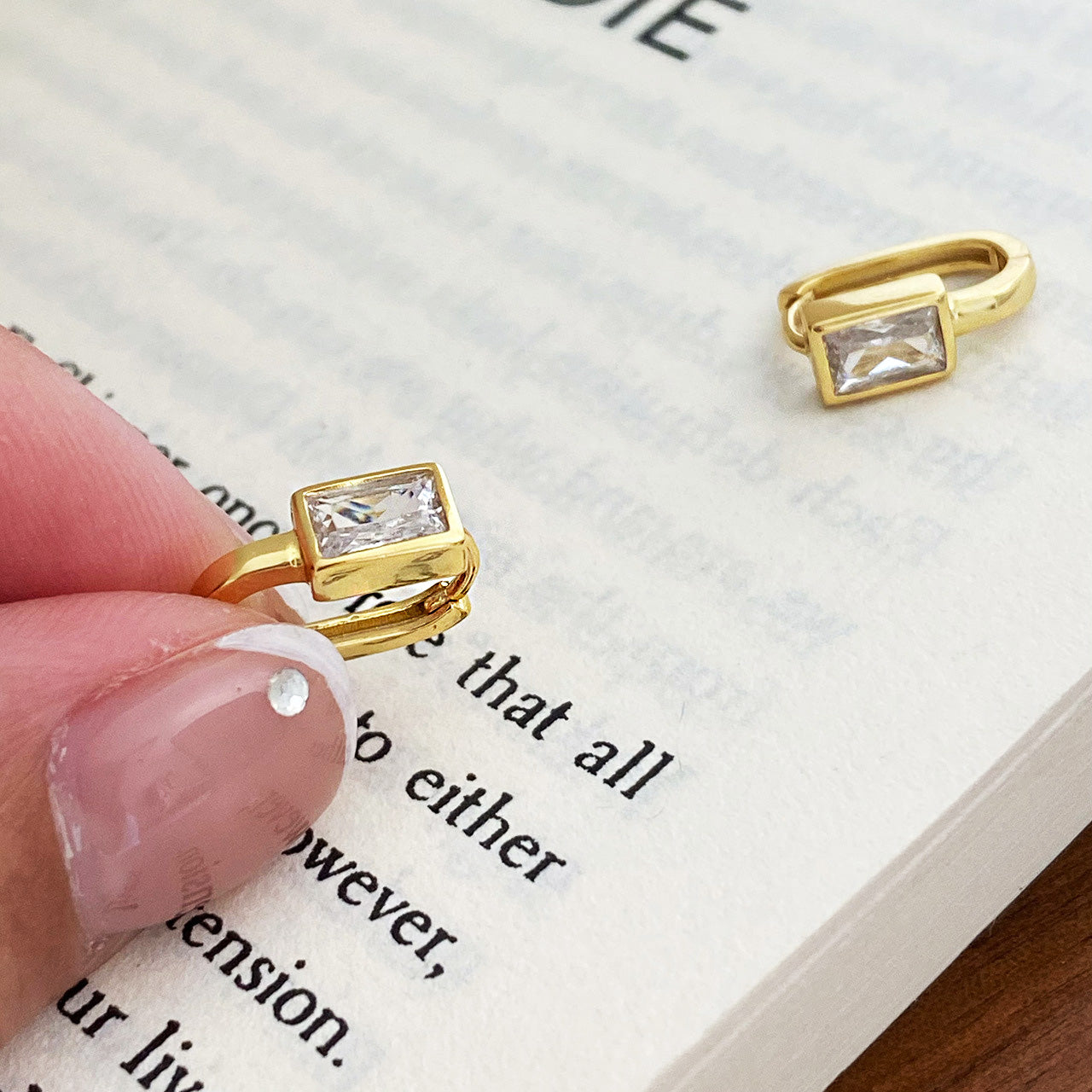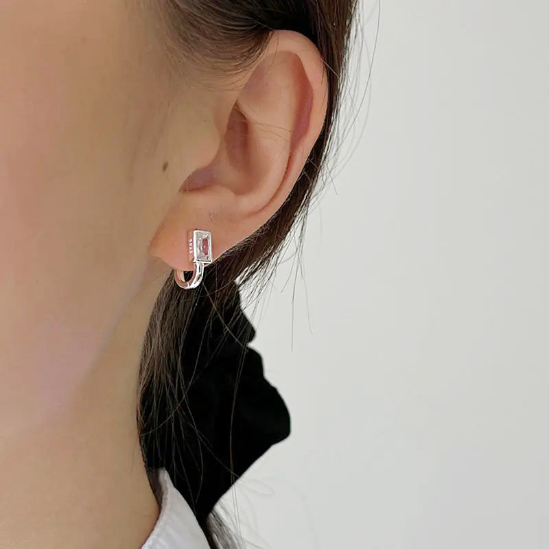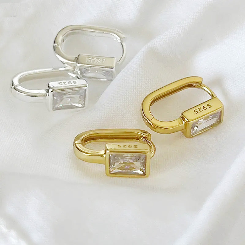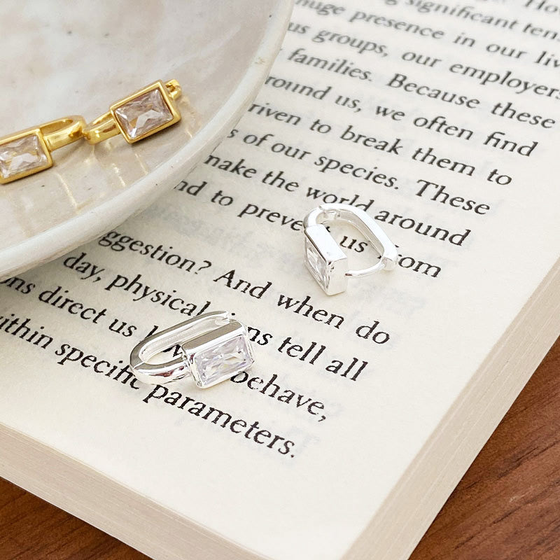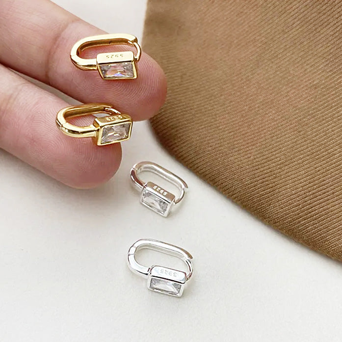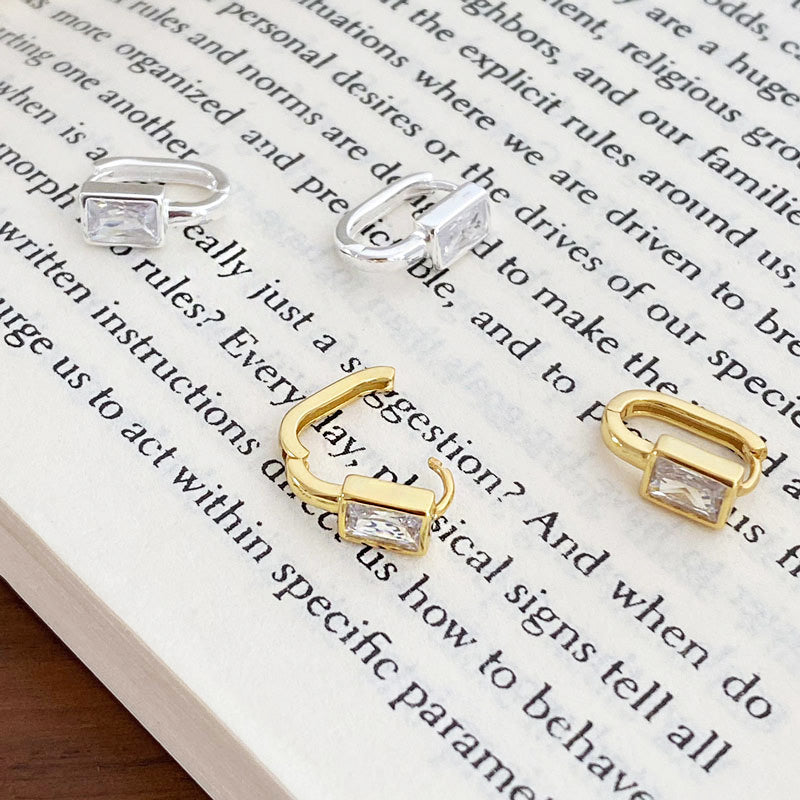 925 sterling silver vintage square zircon U-shaped ear clasp earrings (5 pairs)