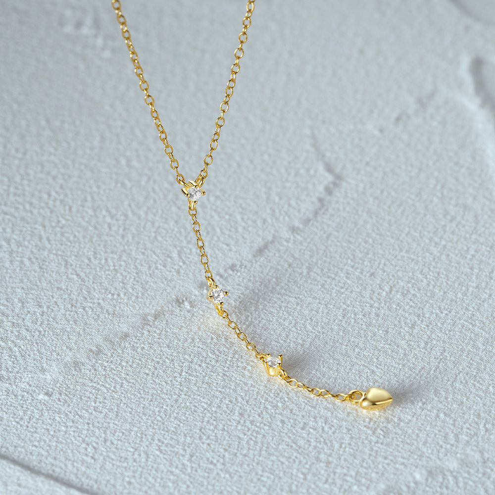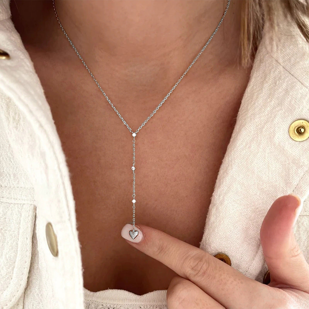 925 sterling silver y-shaped heart charm drop necklace Set of 5