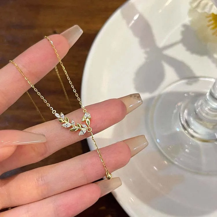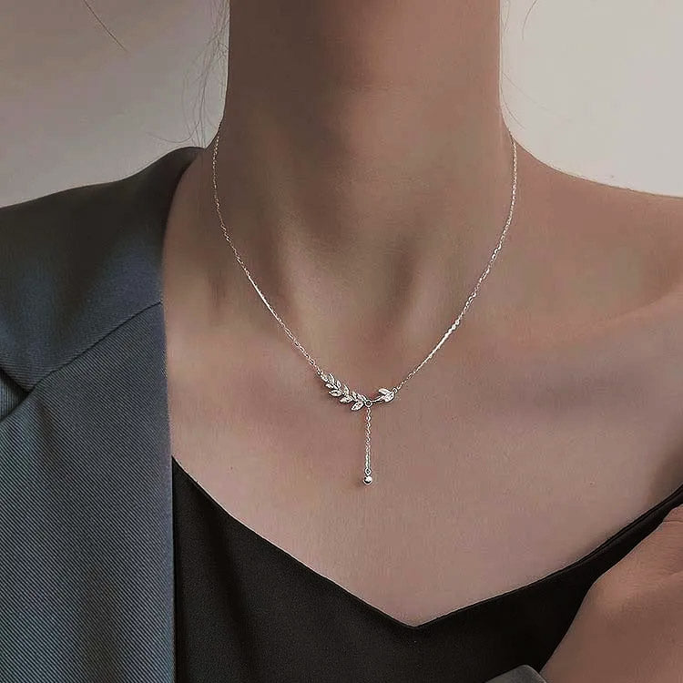 925 sterling silver zircon leaf tassel pendant necklace Set of 5