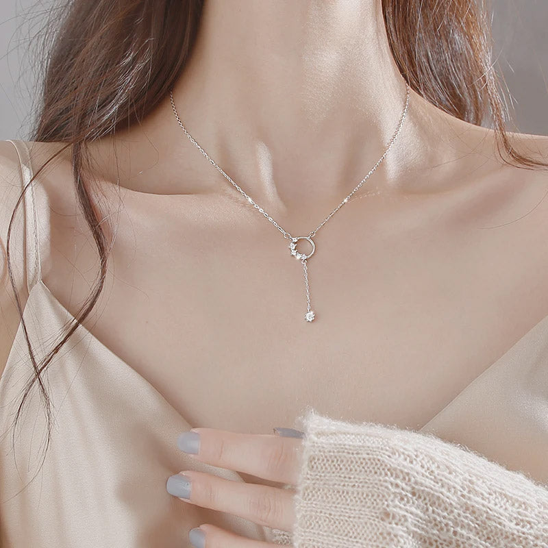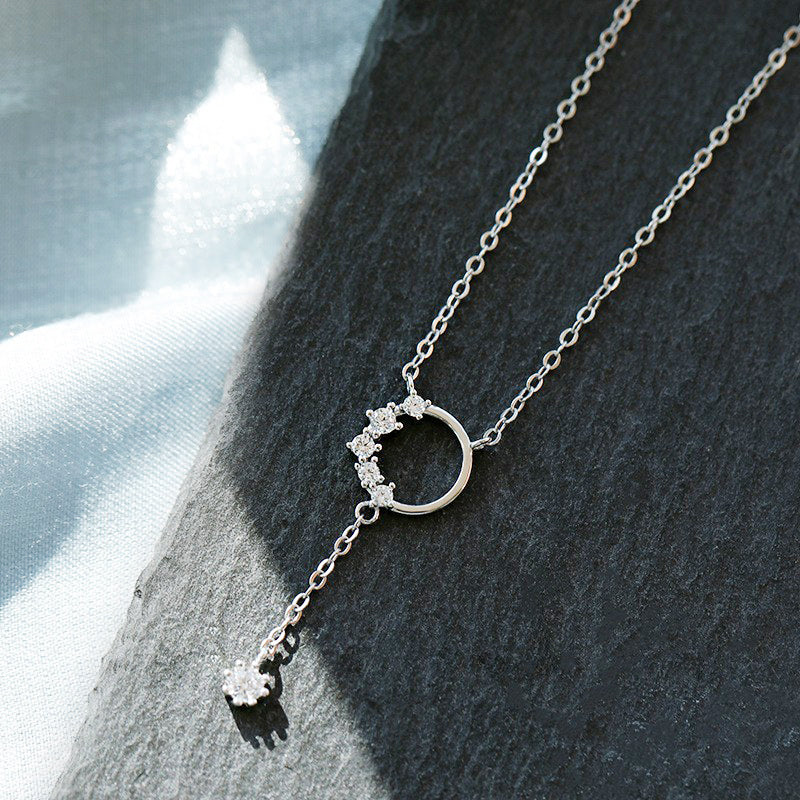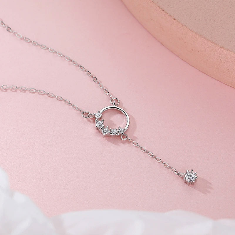 925 sterling silver zircon shiny circle Tassel pendant necklace set of 5
