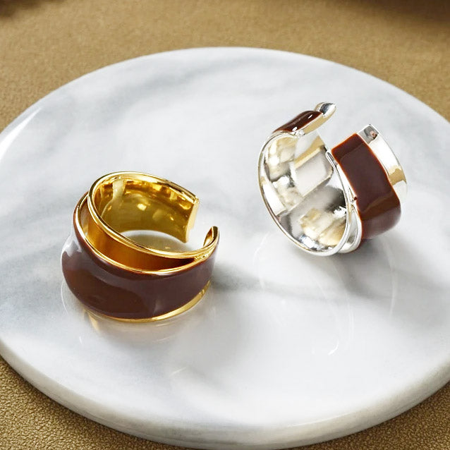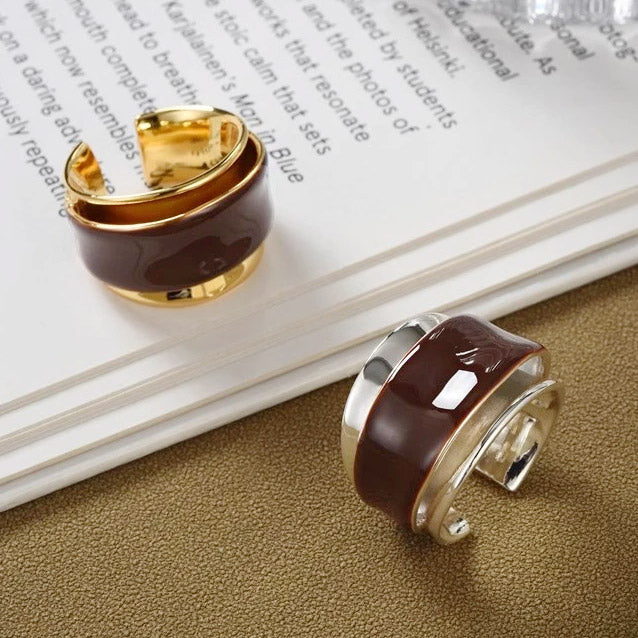 brass dual layered chocolate enamel chunky band cuff rings Set of 5
