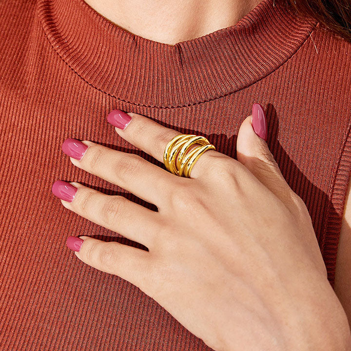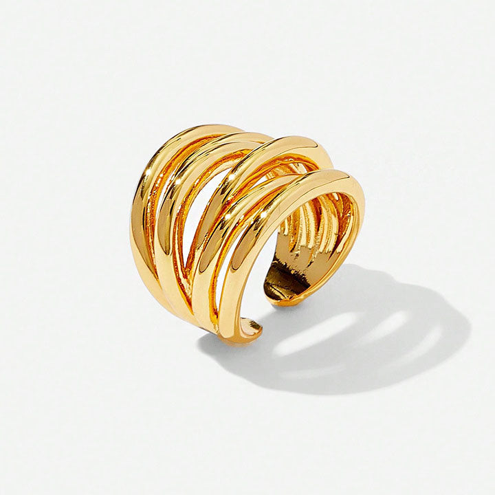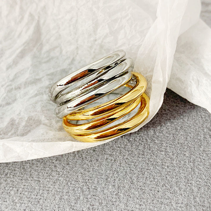 brass vintage multiple layered cuff open rings Set of 5