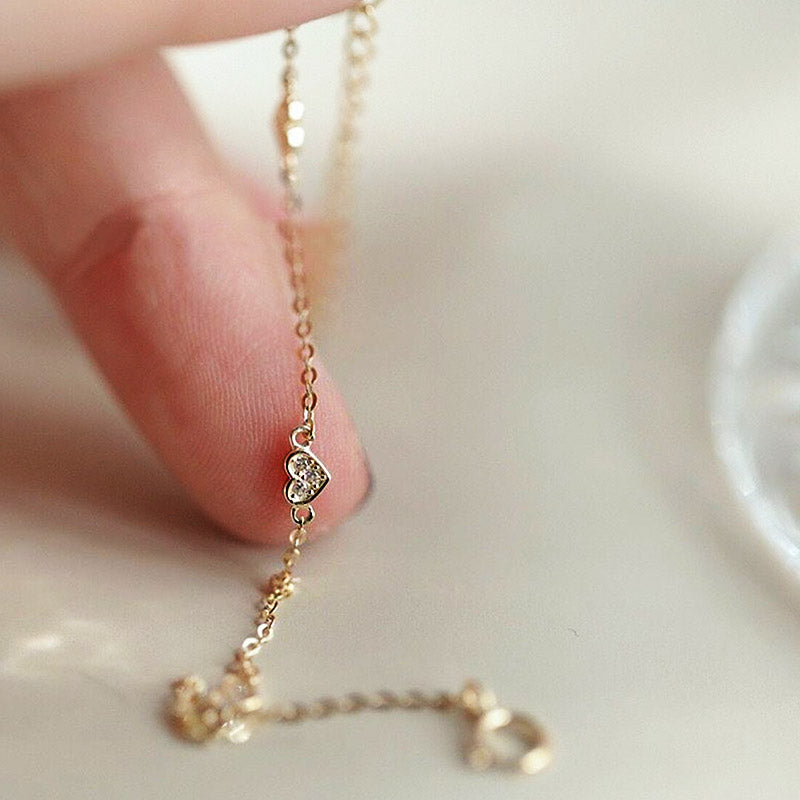 cheap sterling silver delicate gold tiny heart bracelet Set of 5