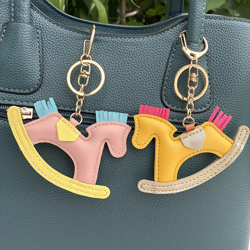 Cute PU Leather Rocking Horse Keychain with Braided Rope Charm (5 pcs)