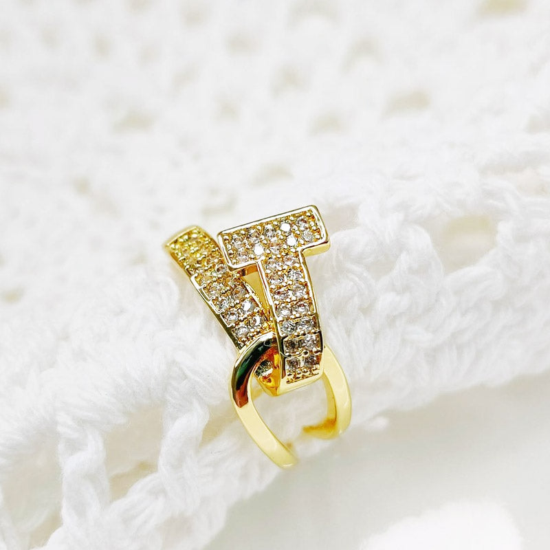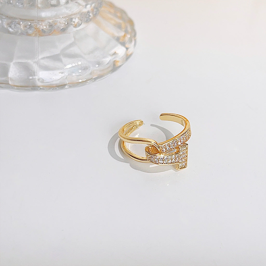 Fashion gold plated opening zircon stone finger rings Set of 5