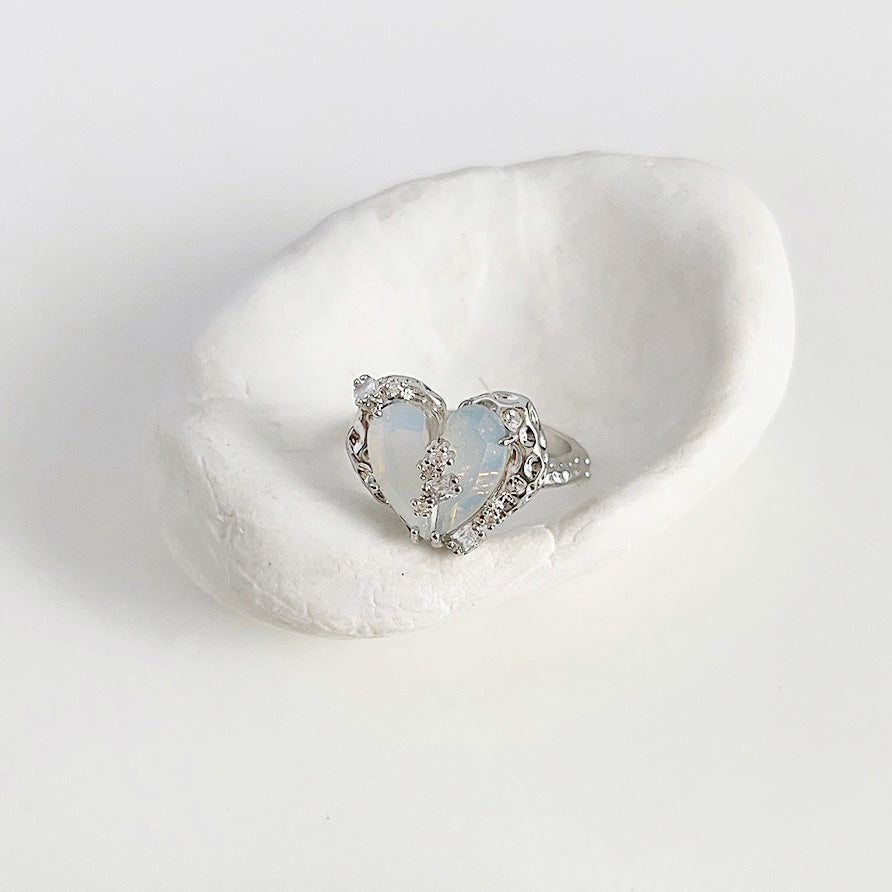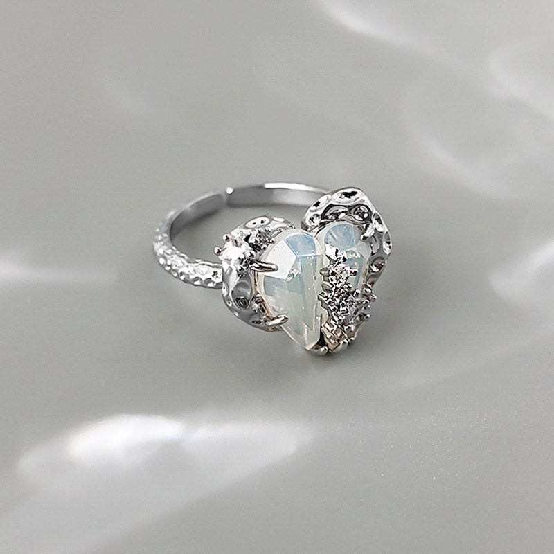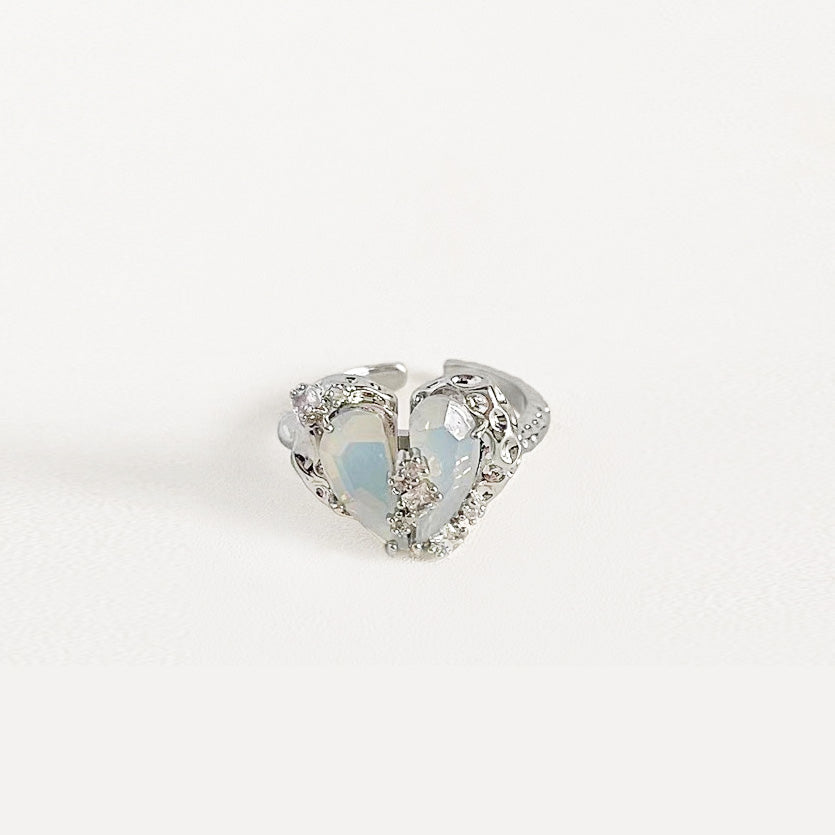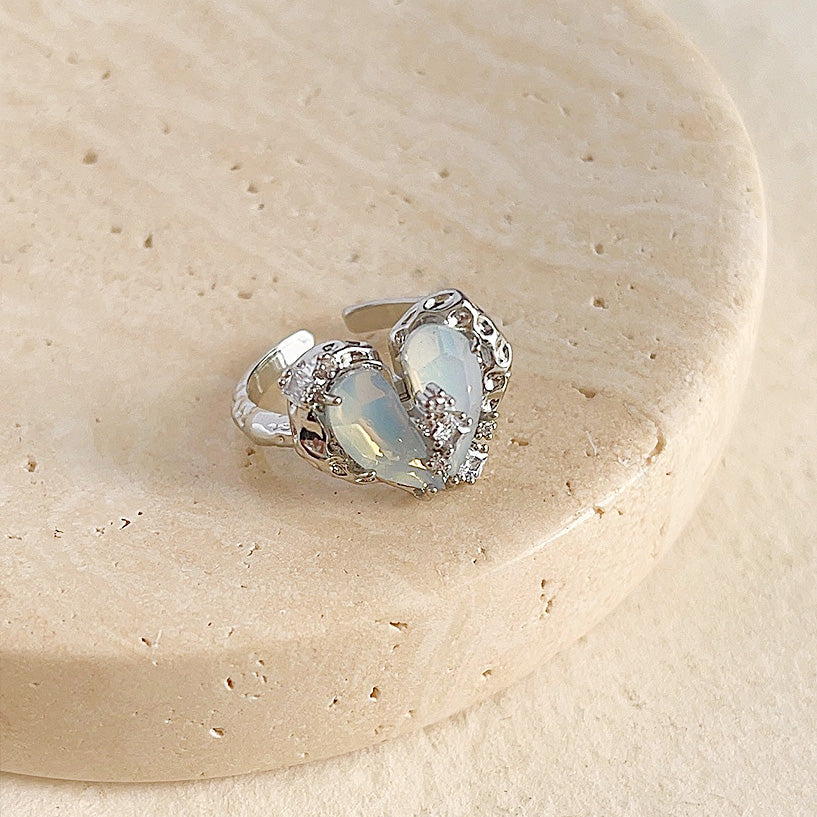 Fashion silver plated adjustable crystal love heart open finger rings Set of 5