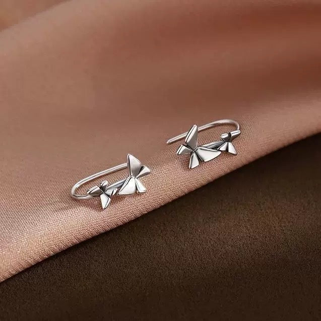 A fresh and creative butterfly hook earring crafted from premium sterling silver, showcasing a unique and niche design aesthetic that highlights both elegance and individuality.