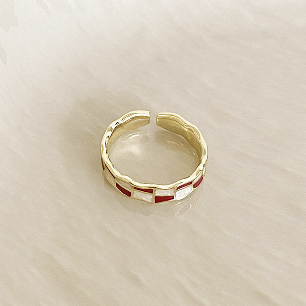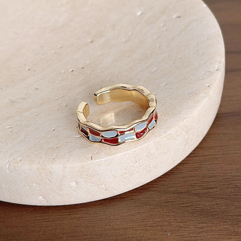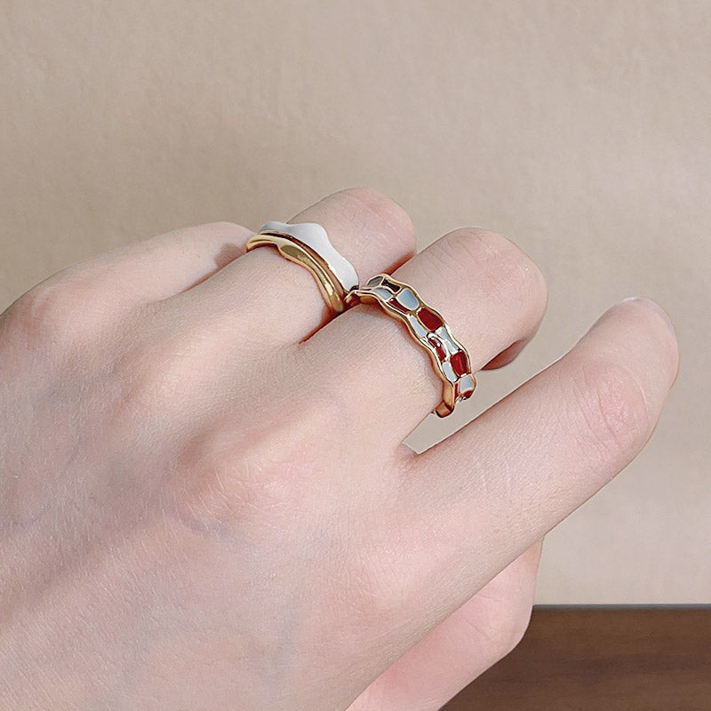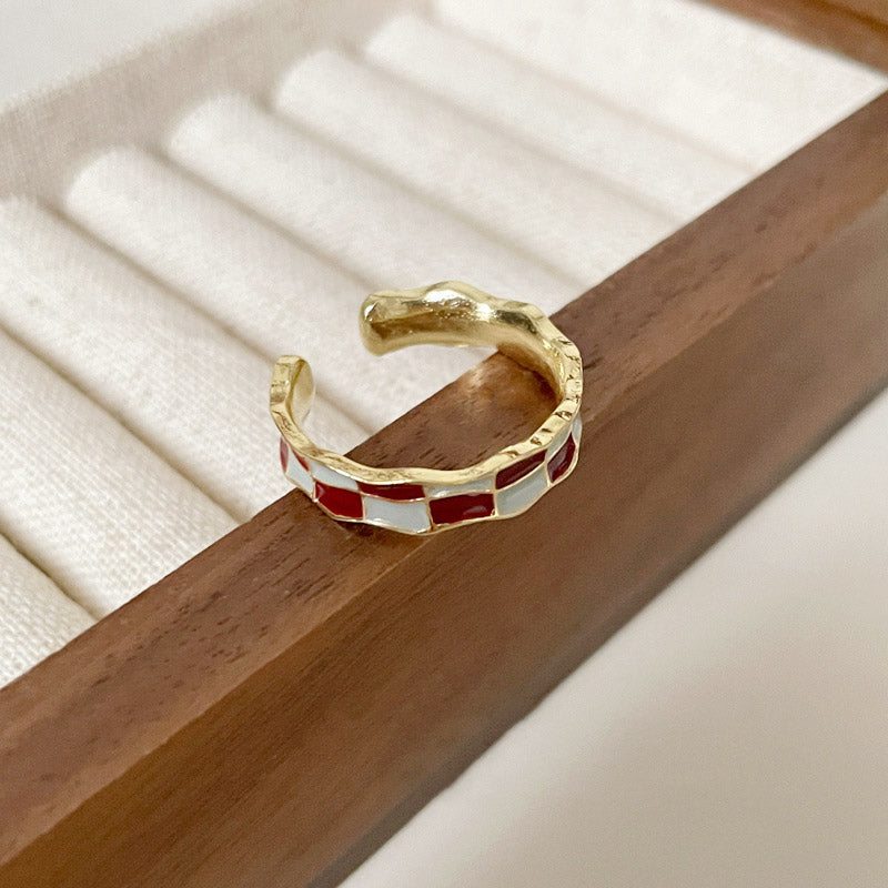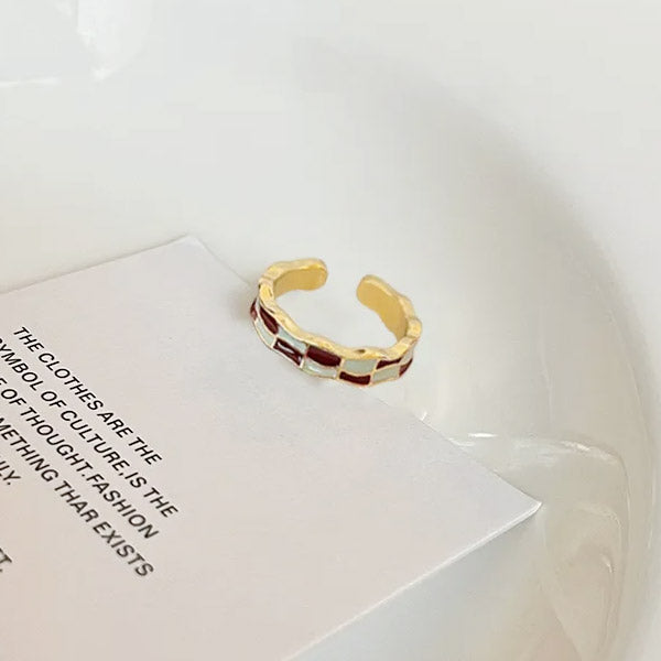 Gold plated enamel checkerboard design adjustable open rings Set of 5