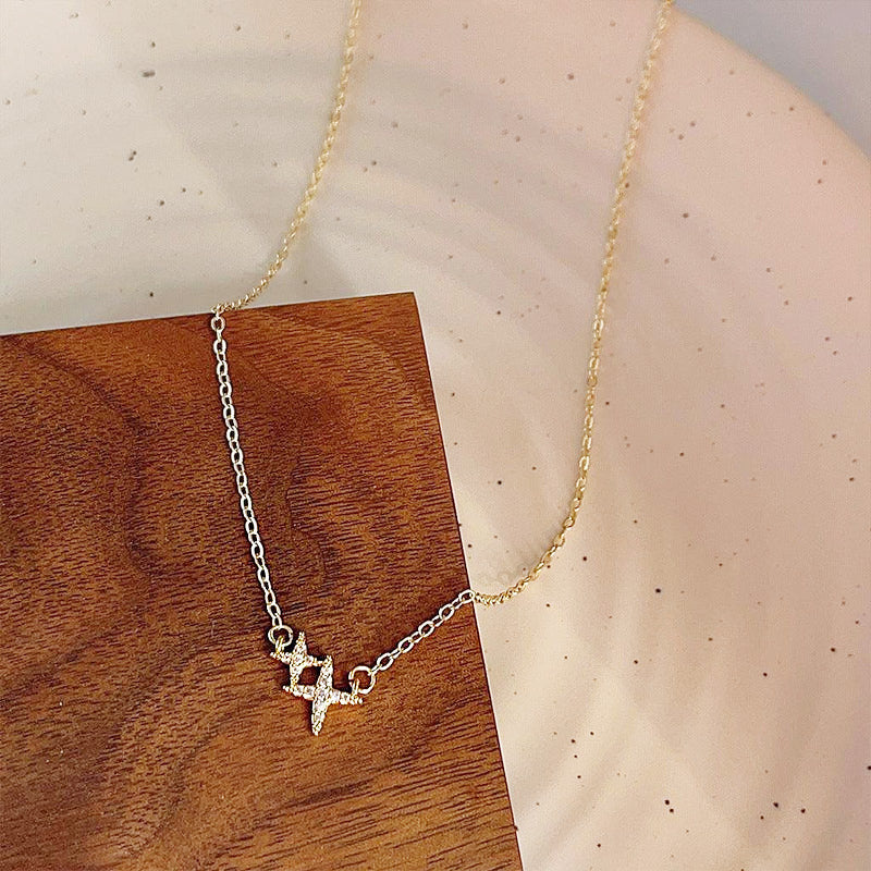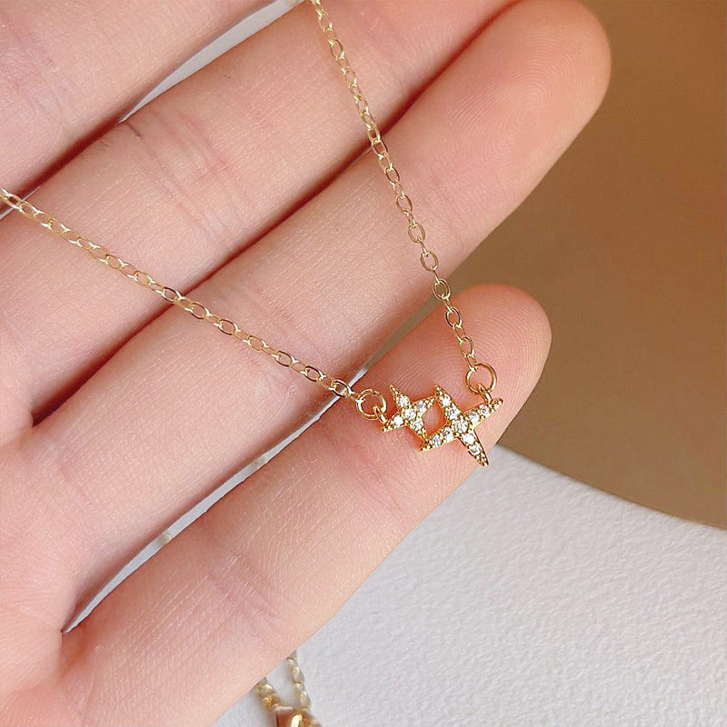 Gold plated micro-insert zirconia double star collar necklaces Set of 5
