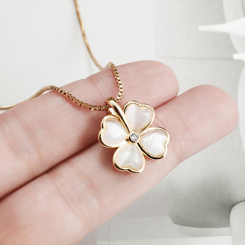 Gold plated rhinestone cat-eye opal stone heart four leaf clover pendant necklaces Set of 5