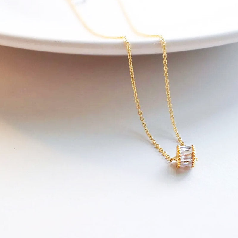 Gold plated zircon Wheel cylindrical catheter choker necklaces Set of 5