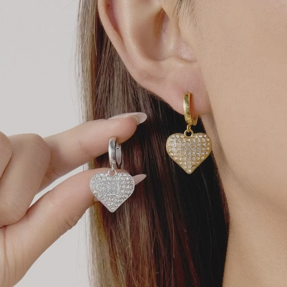 Featuring bold sparkle and a romantic touch, these Heart Zircon Earrings are designed to shine. The heart-shaped charm is encrusted with shimmering zircons, suspended from a sleek stainless steel hoop in your choice of gold or silver. The drop-style silhouette adds movement and a modern edge, making them standout ladies fashion earrings for any occasion. Both elegant and playful, they’re the kind of awesome anniversary gifts for wife that turn everyday moments into something memorable.