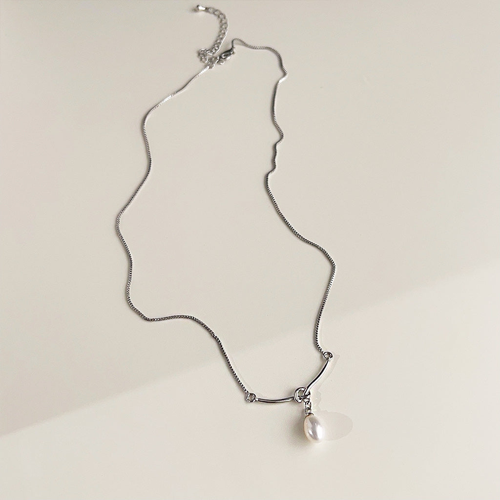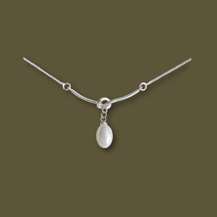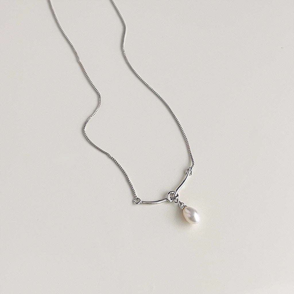 Silver plated knot drop pearl pendant necklaces Set of 5