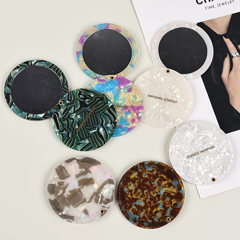 Our mirrors feature high-quality acetate and acrylic for the Tortoiseshell and Marble Pattern frames, ensuring a lightweight yet premium feel for every Compact Hand Mirror.