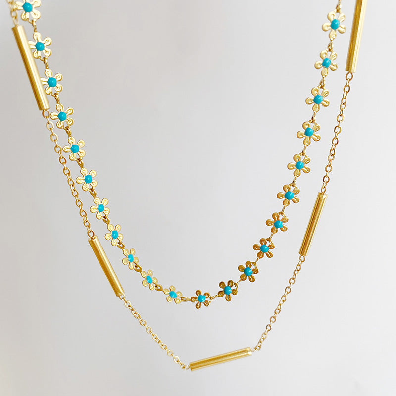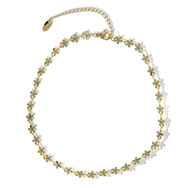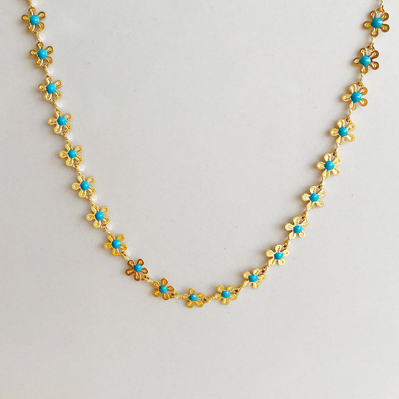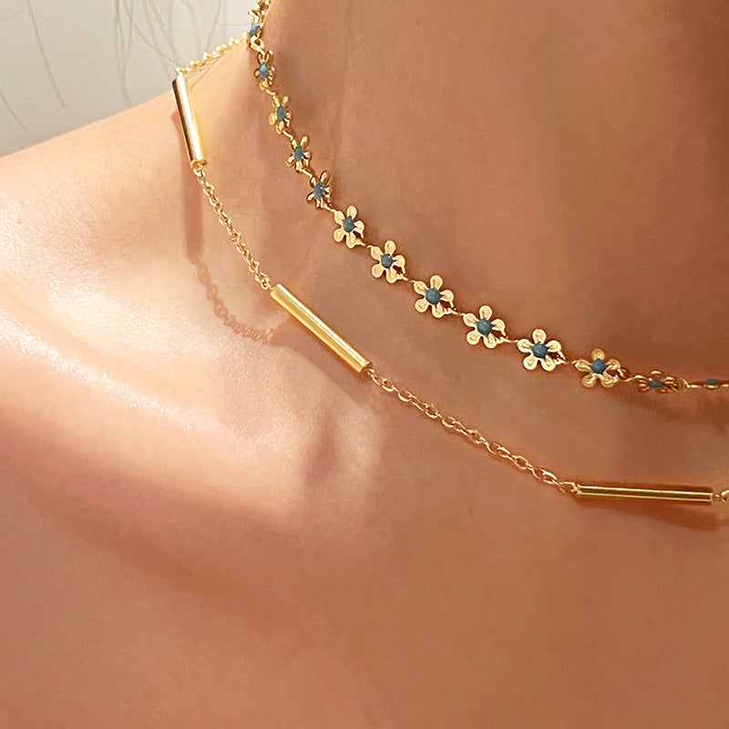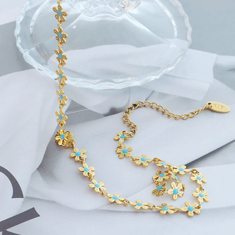 Stainless steel blue enamel chamomile flower charms chain necklaces Set of 5
