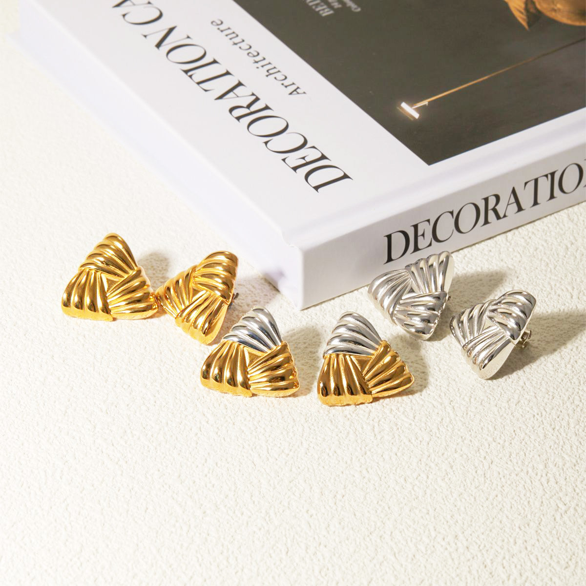 Stainless steel chunky weave triangle shape earrings (5 pairs)