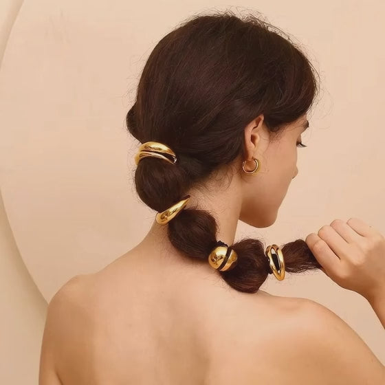 The Stainless Steel Cuff Sleek Simple Curved Metallic Women Hair Tie is a minimalist yet sophisticated hair accessory that adds a polished touch to any hairstyle. Featuring a smooth stainless steel cuff design, this versatile piece complements both short and long ponytails, offering endless styling possibilities. Available in gold and silver finishes, it blends simplicity with elegance for a timeless look.