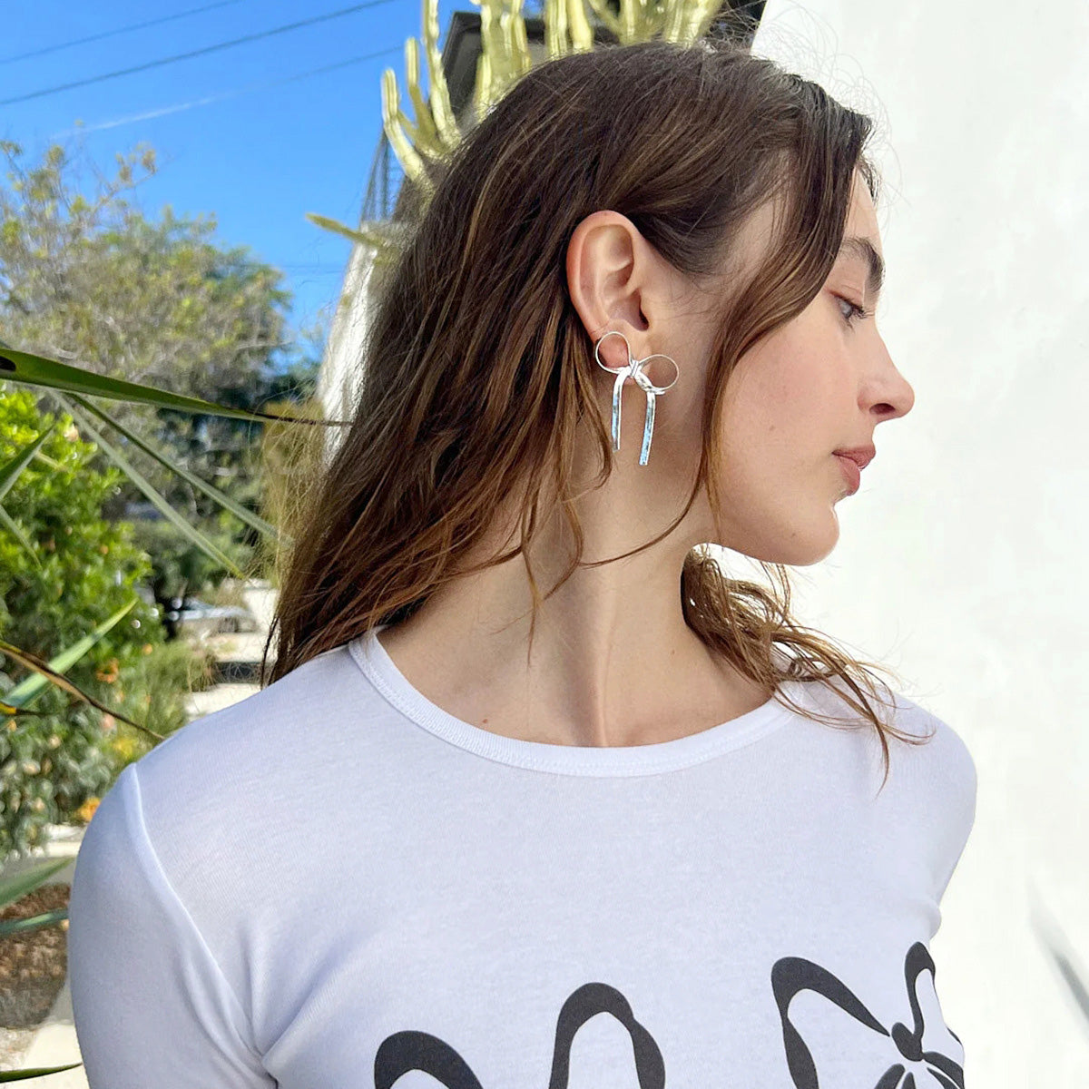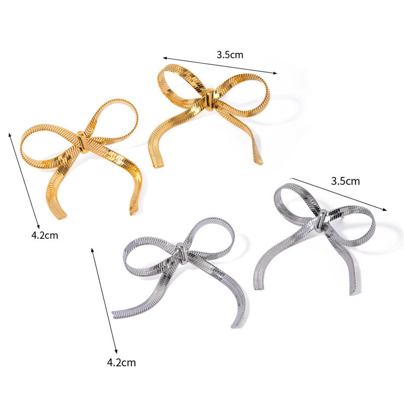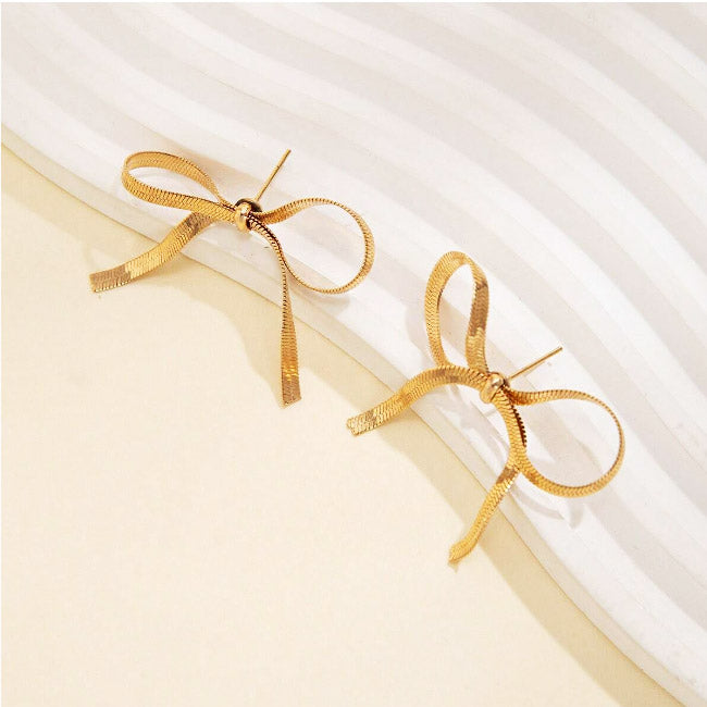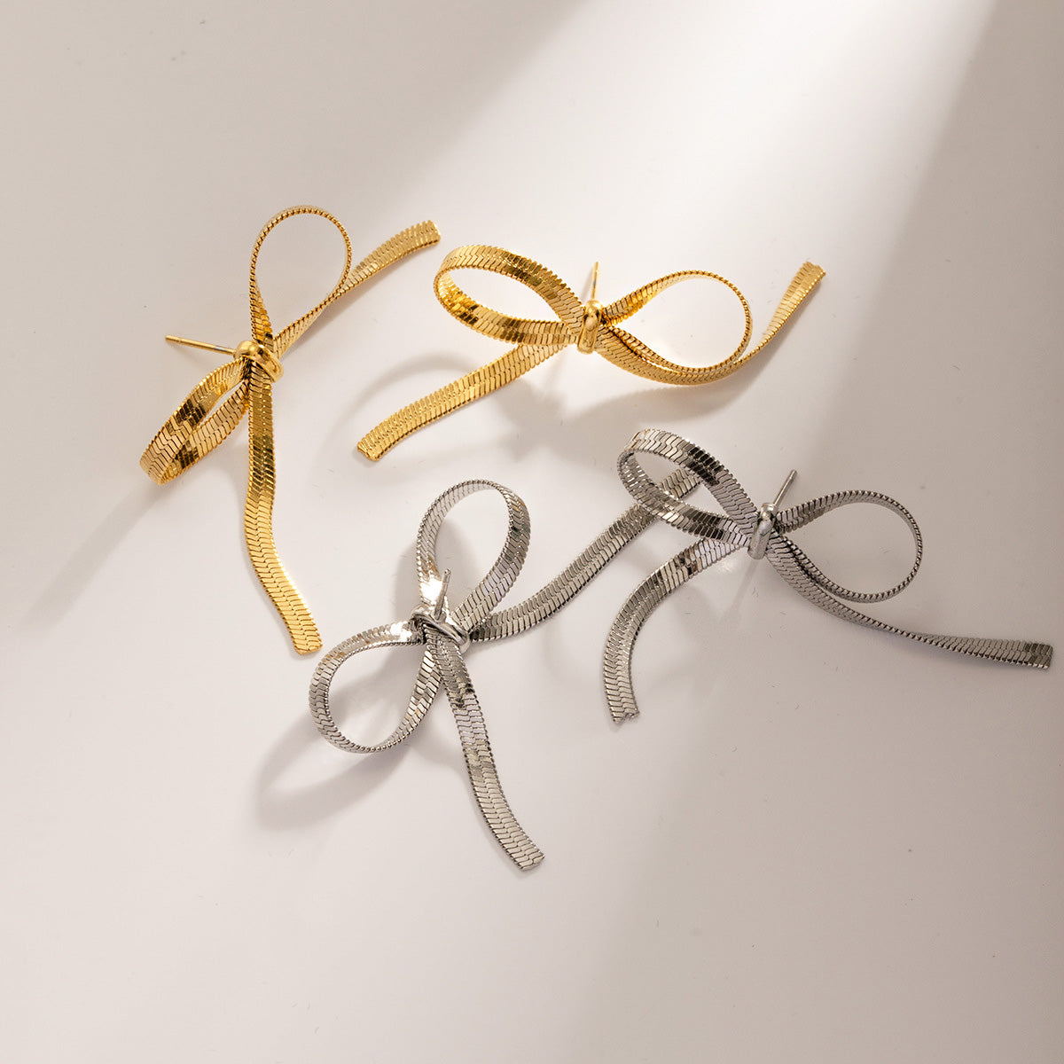 Stainless steel flat snake chain bow earrings (5 pairs)
