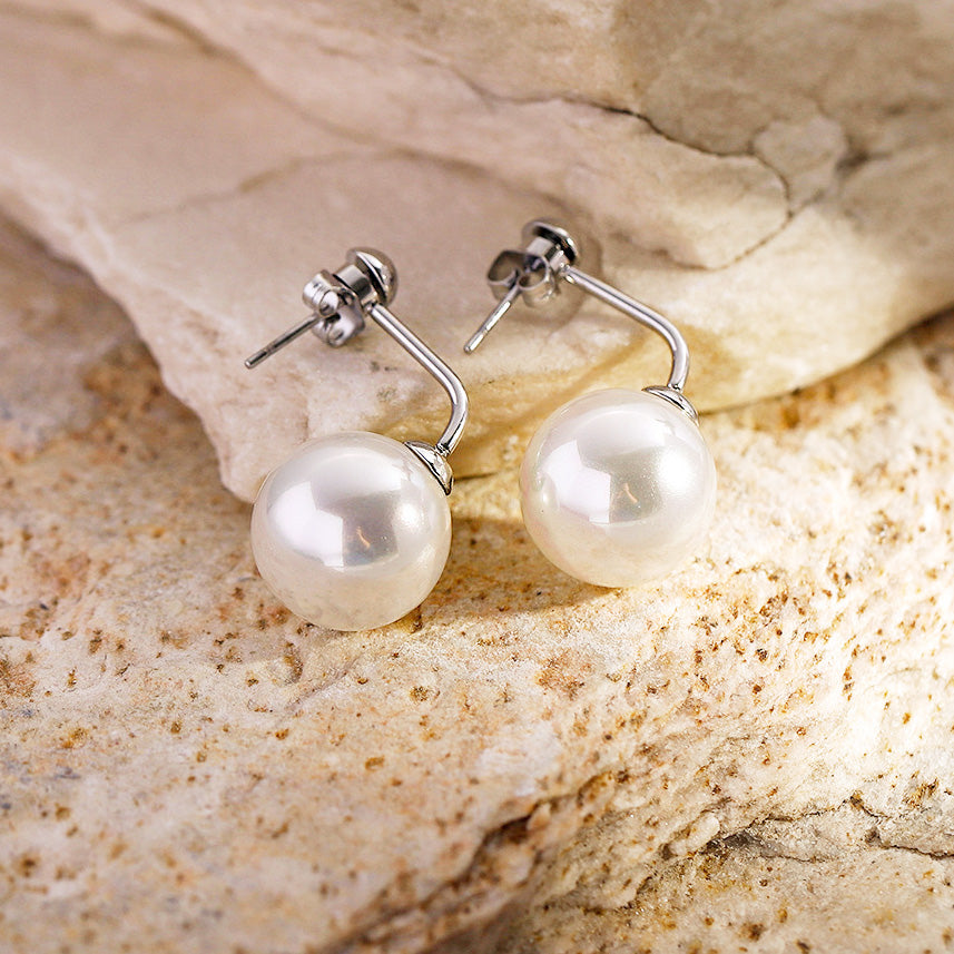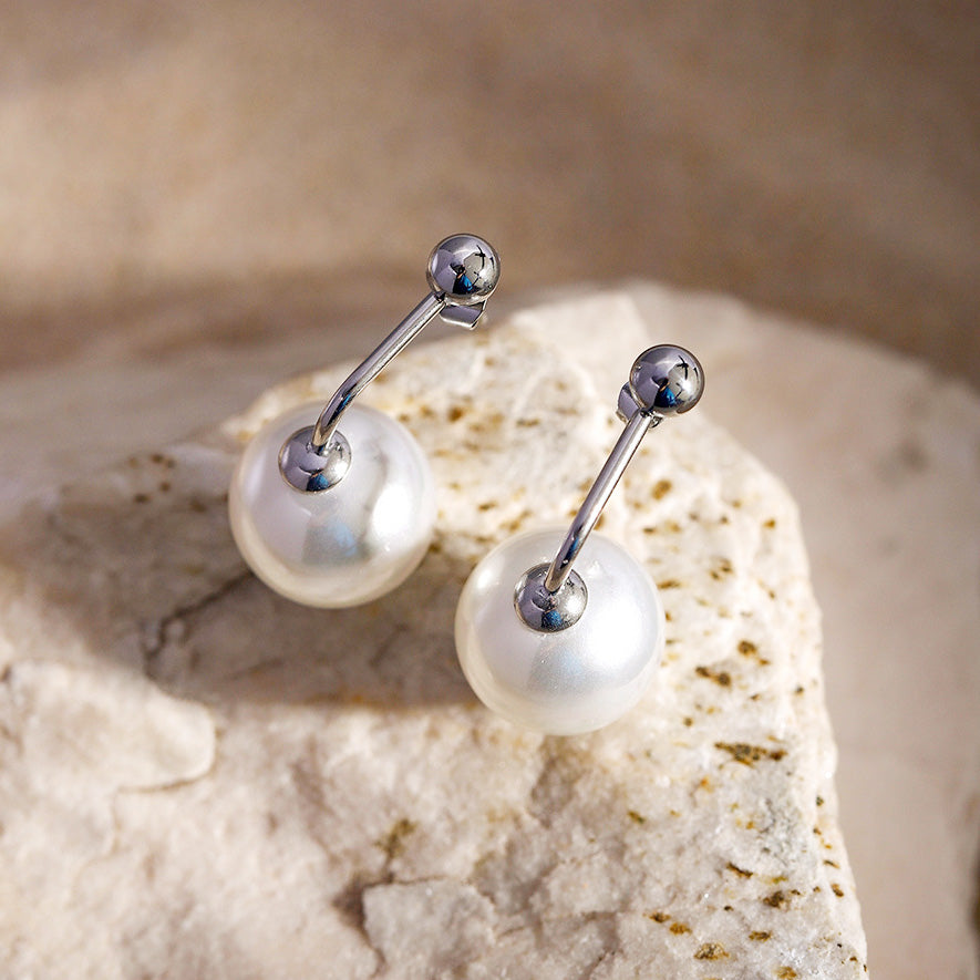 Stainless steel french style single pearl stud earrings (5 pairs)