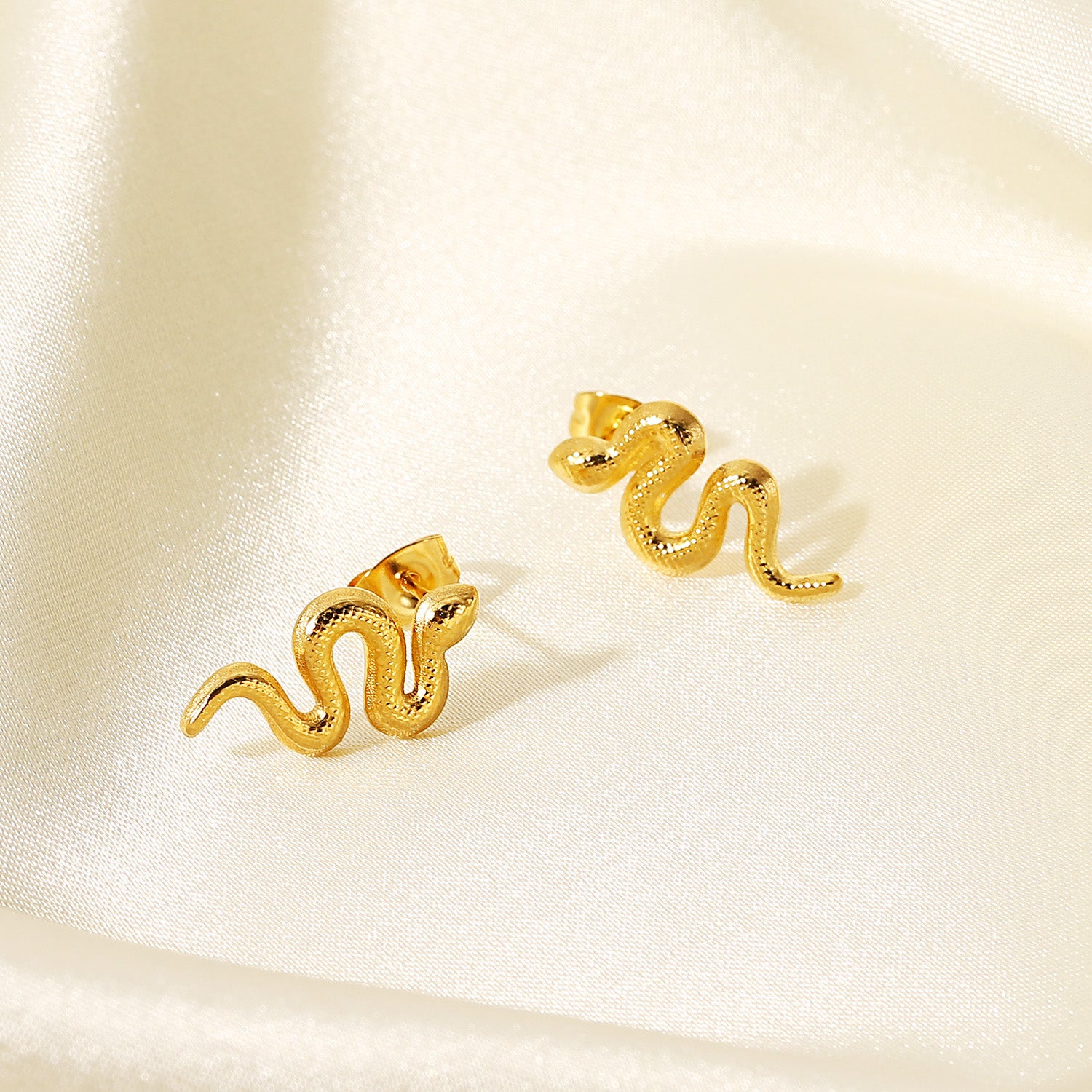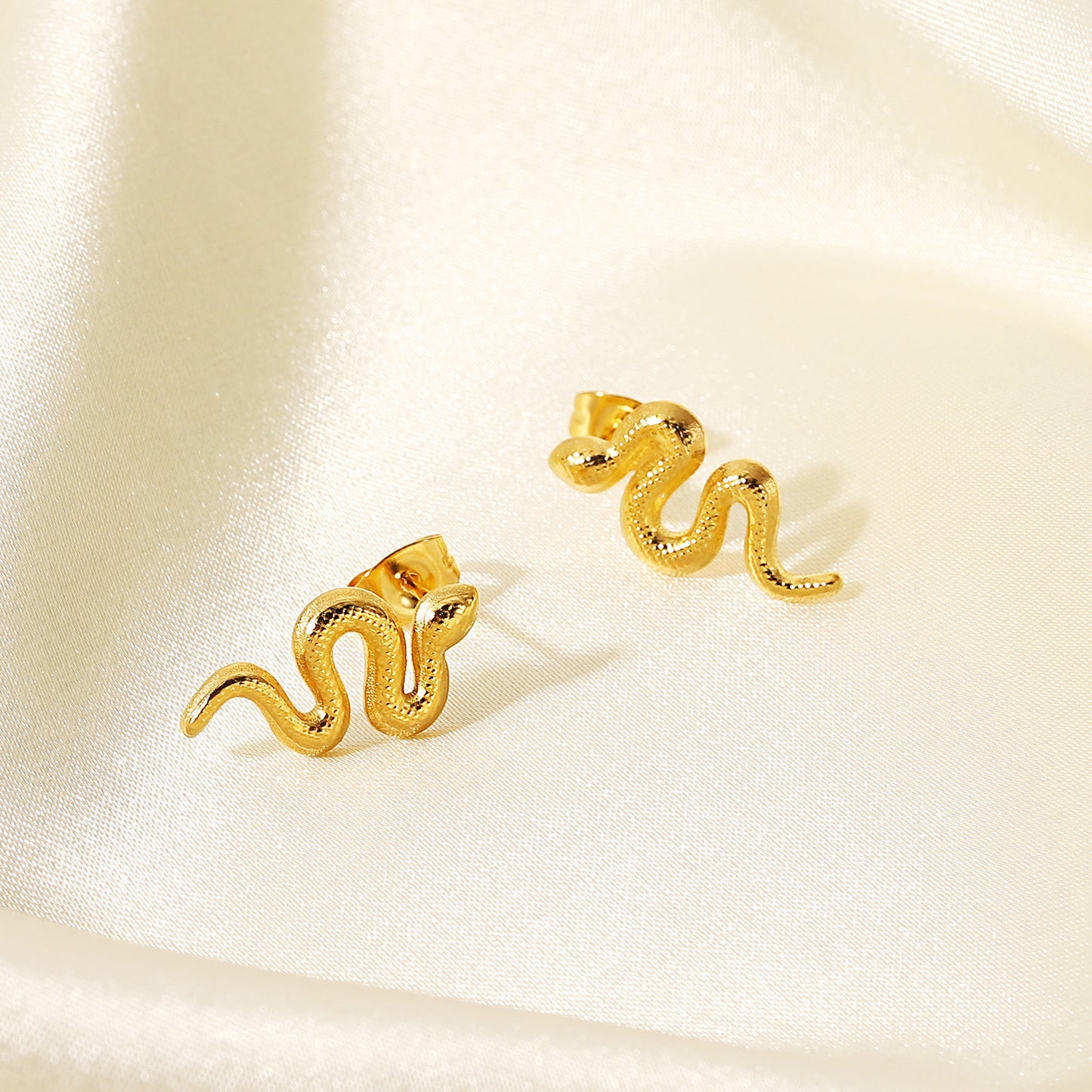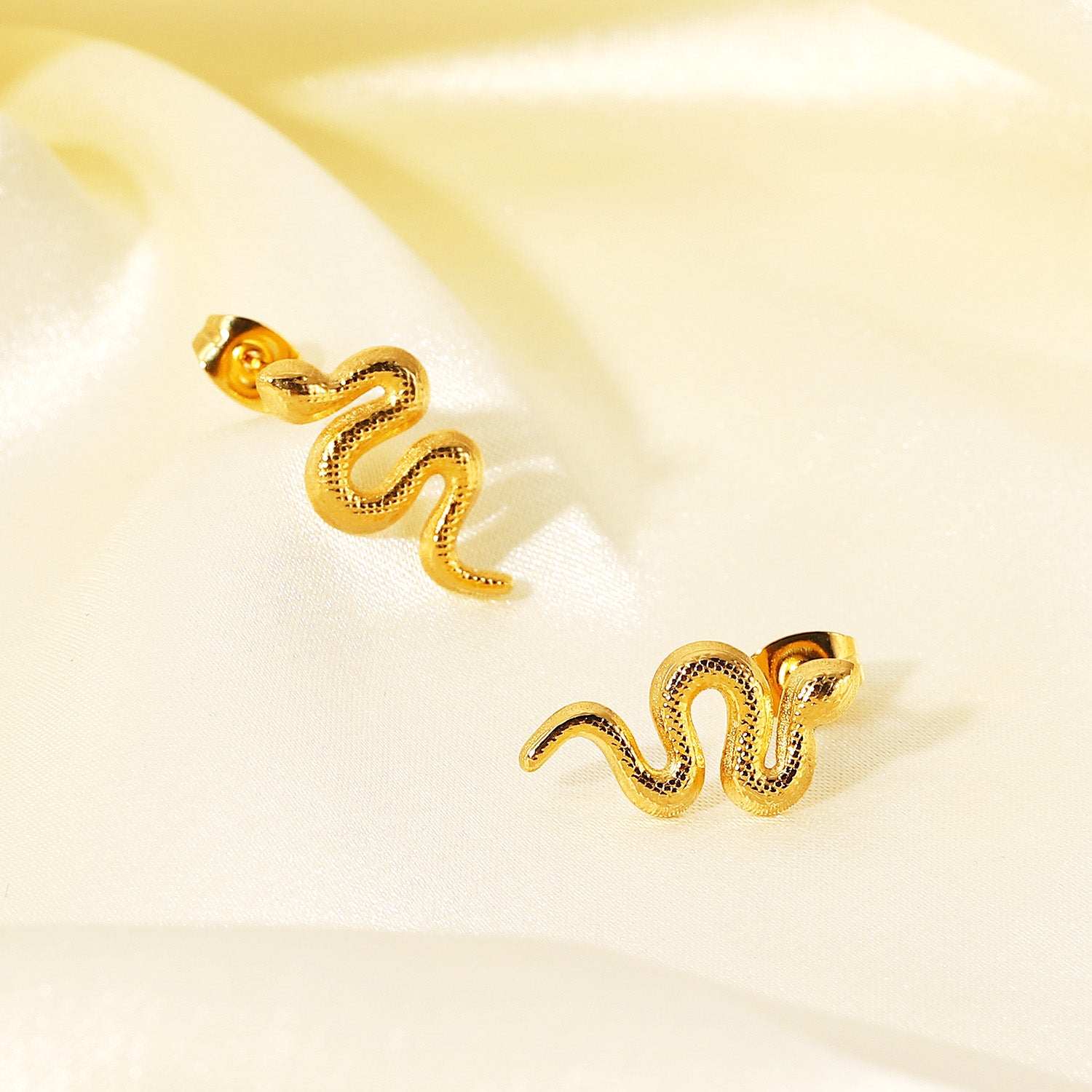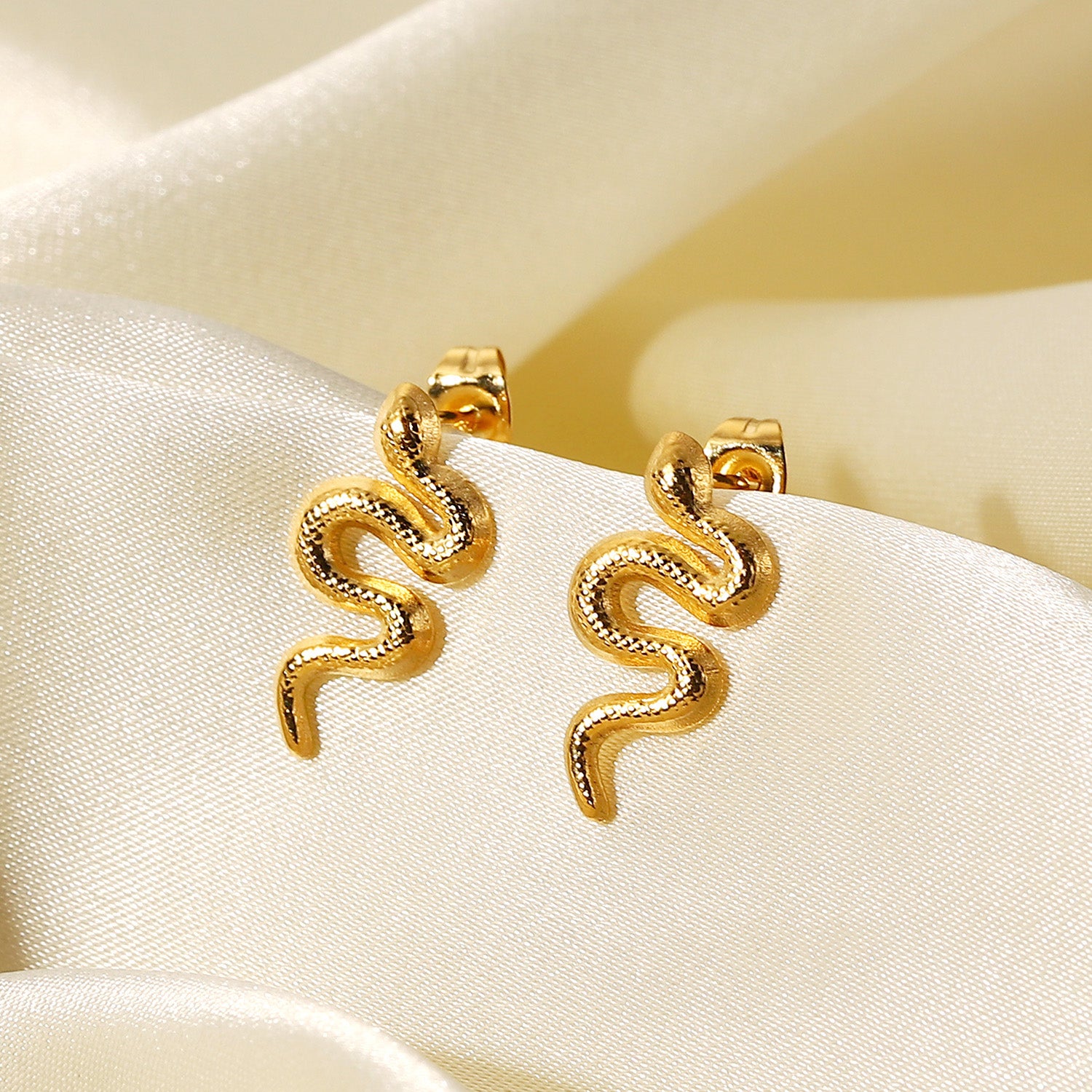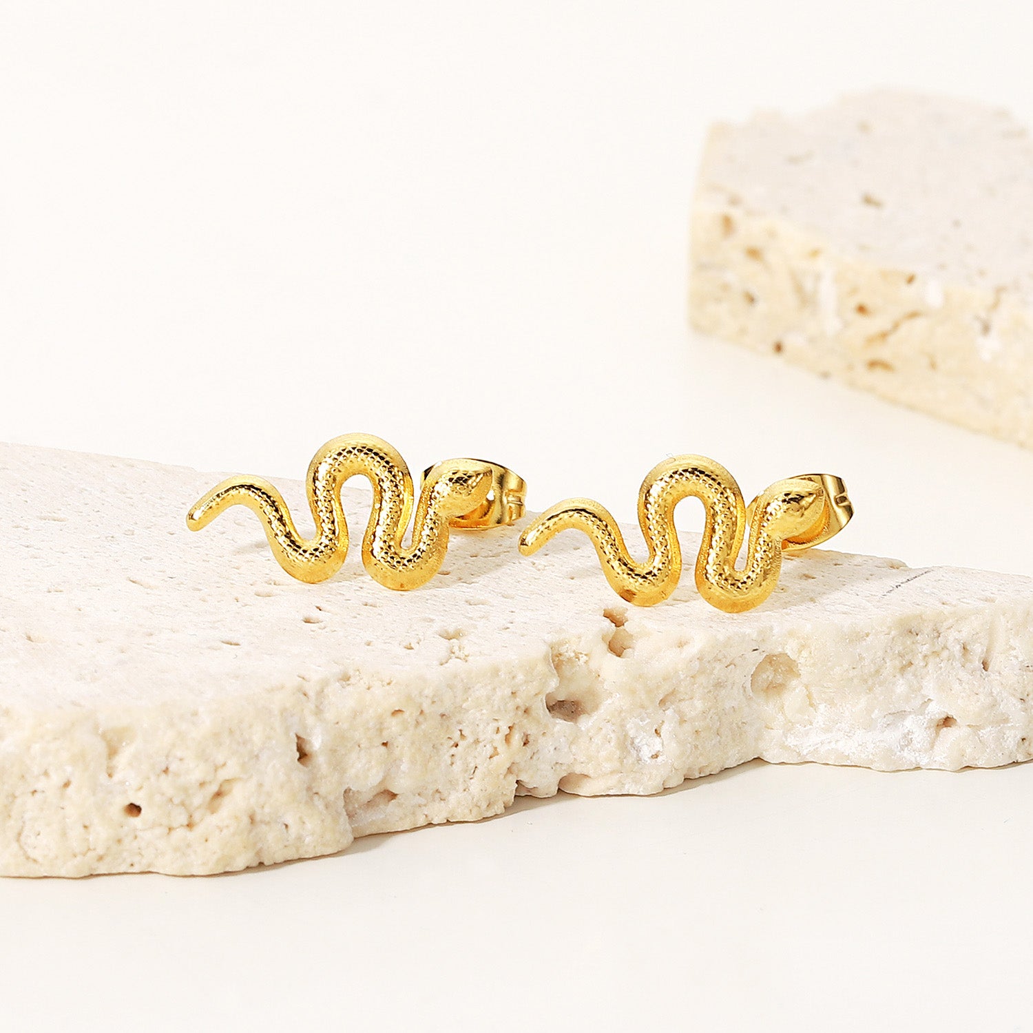 Stainless steel gold distorted snake stud earrings (5 pairs)
