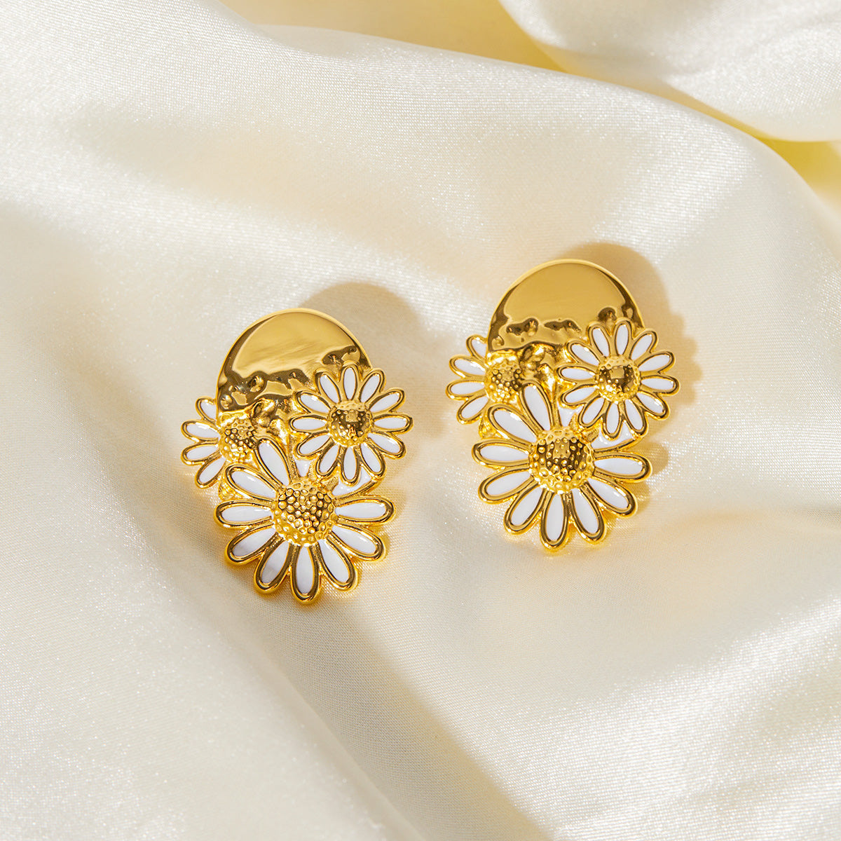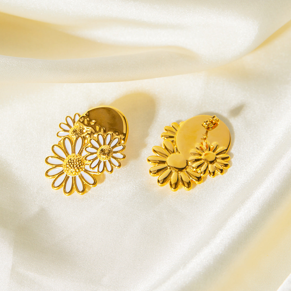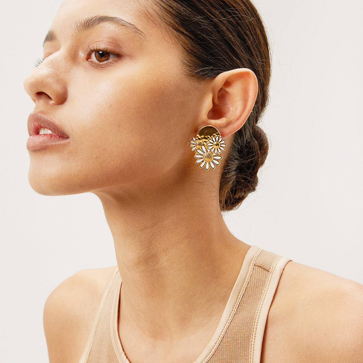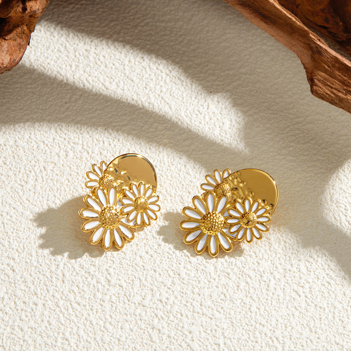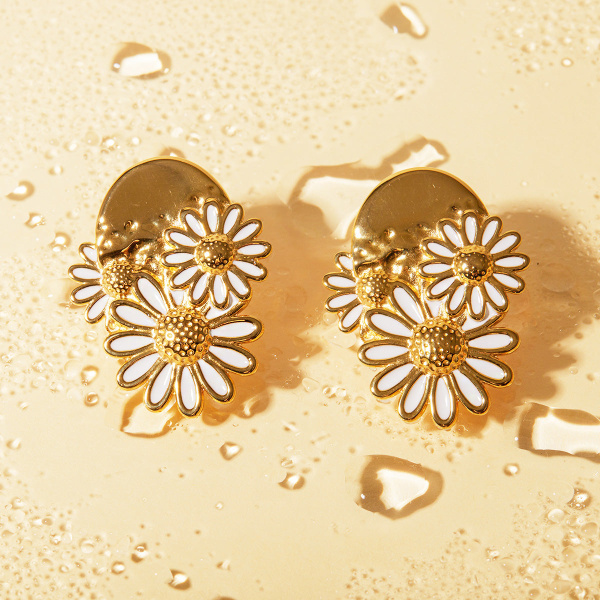 Stainless steel gold enamel sunflower daisy flower stud earrings (5 pairs)