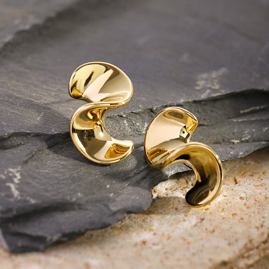 Stainless steel gold geometric wave wavy stud earrings (5 pairs)