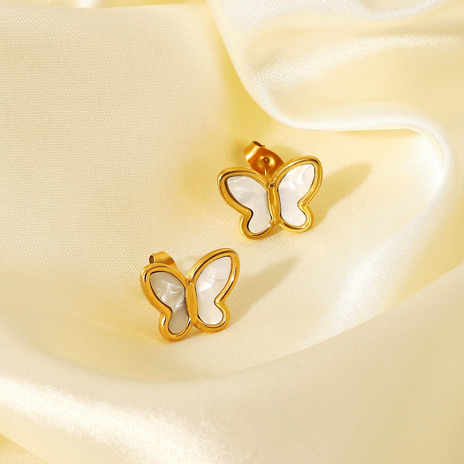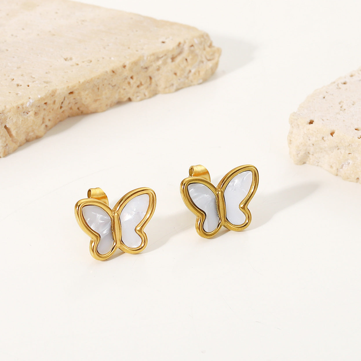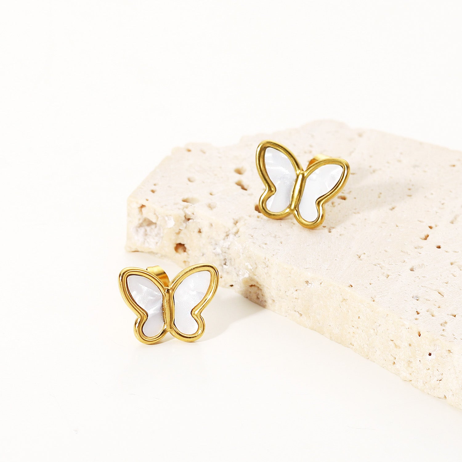 Stainless steel gold mother of pearl butterfly stud earring (5 pairs)
