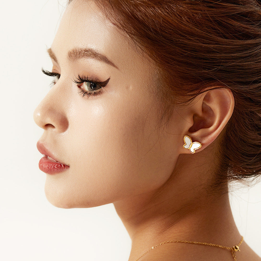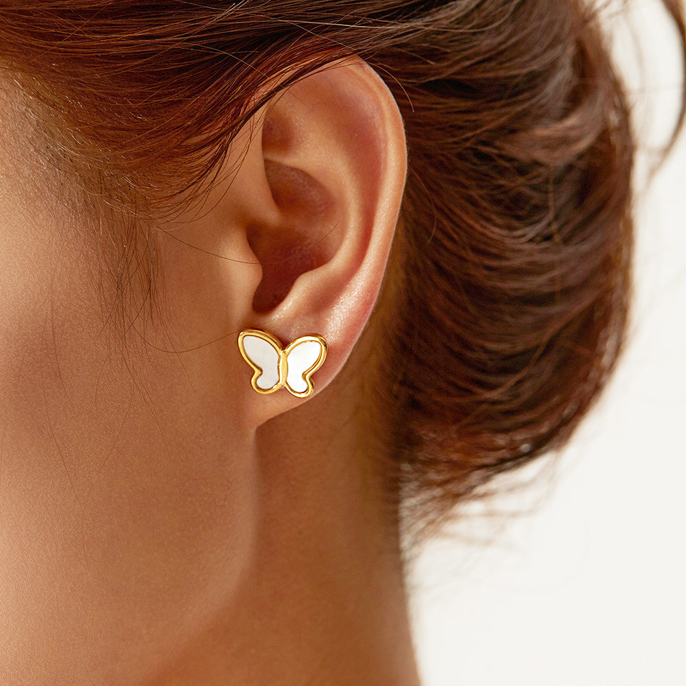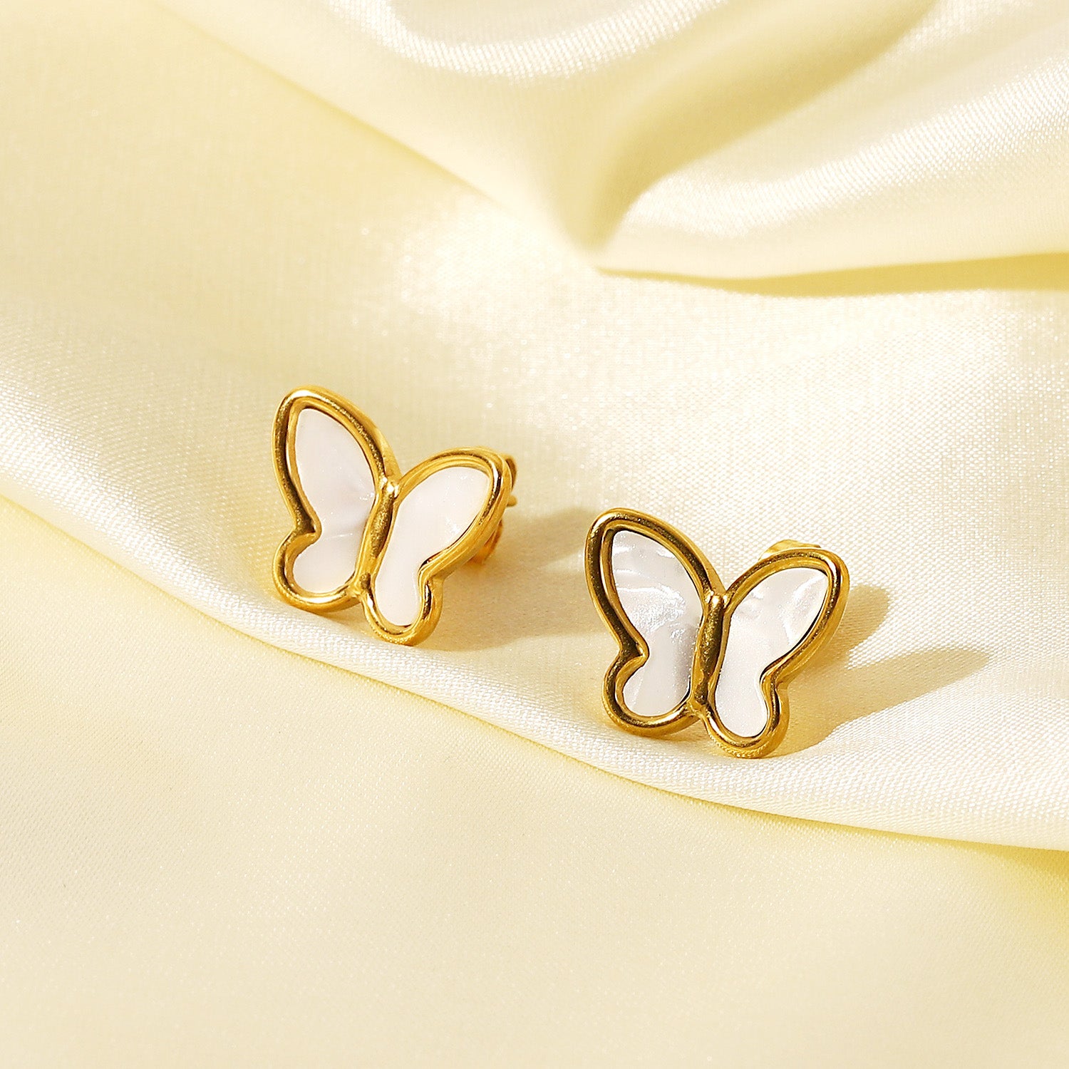 Stainless steel gold mother of pearl butterfly stud earring (5 pairs)