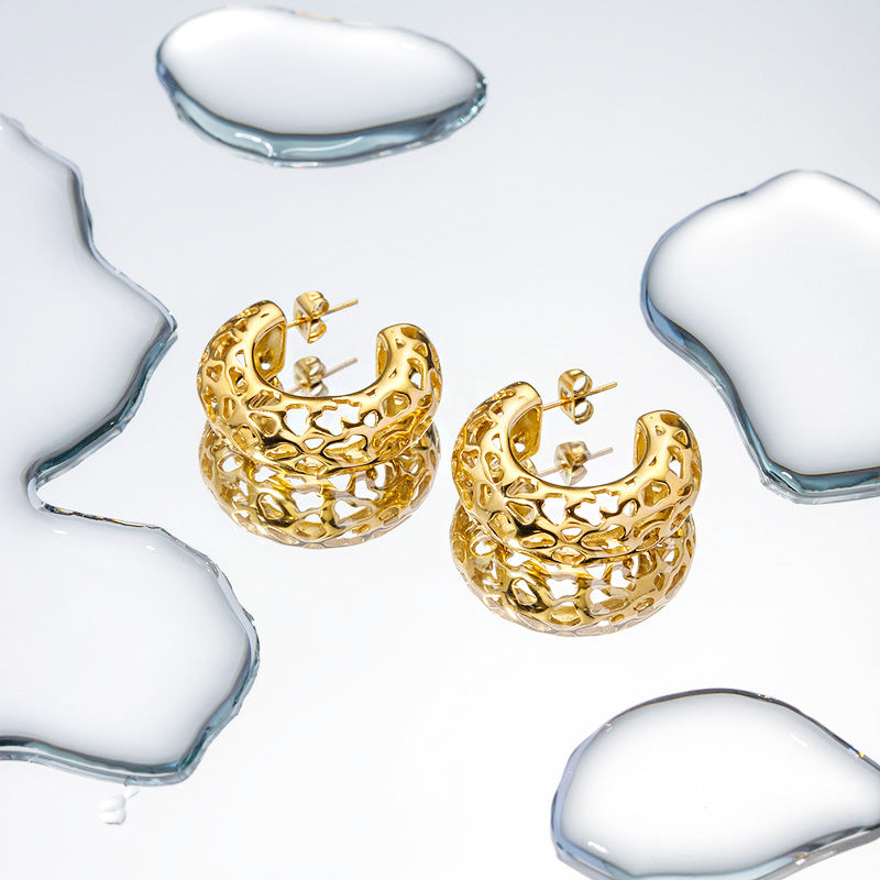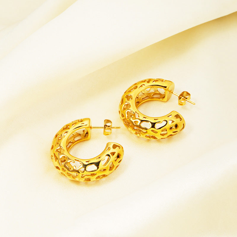 Stainless steel gold plated chunky 2cm hollow C-shaped stud earrings (5 pairs)