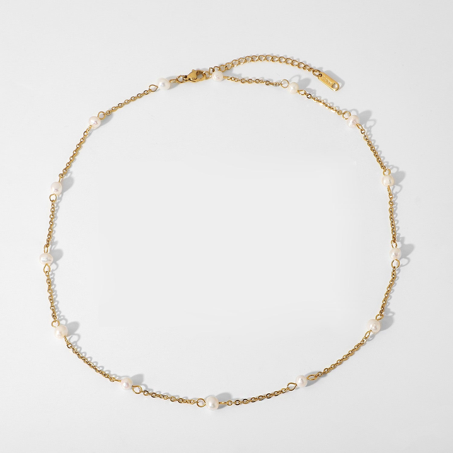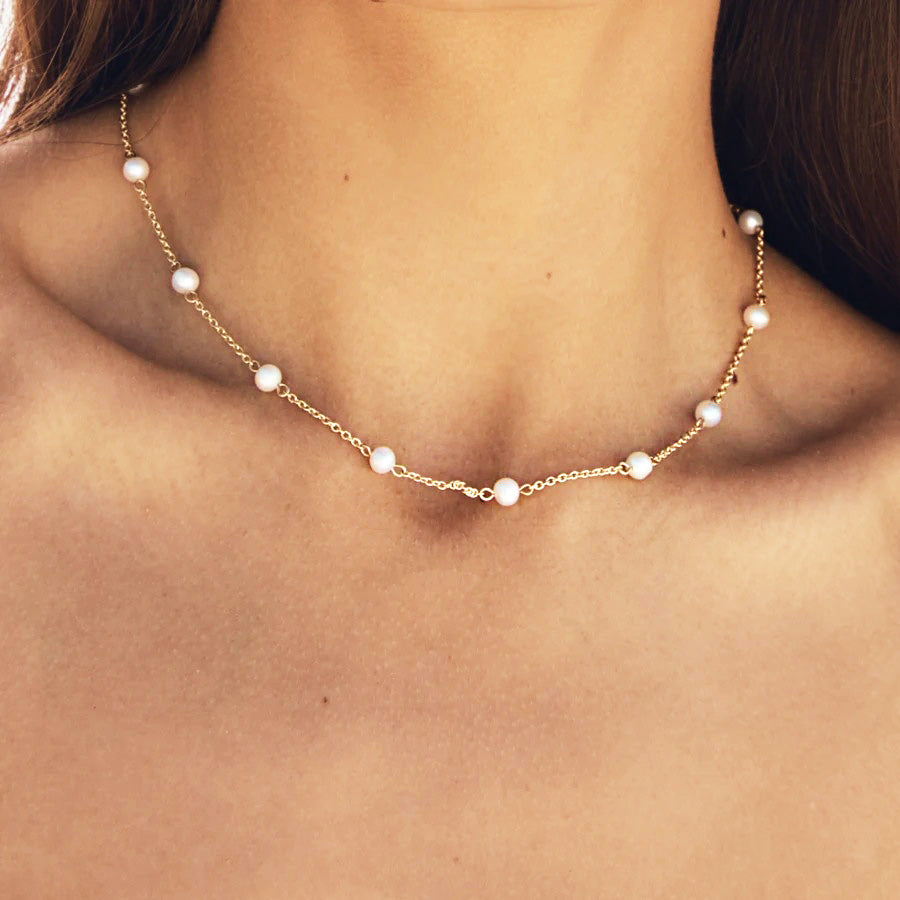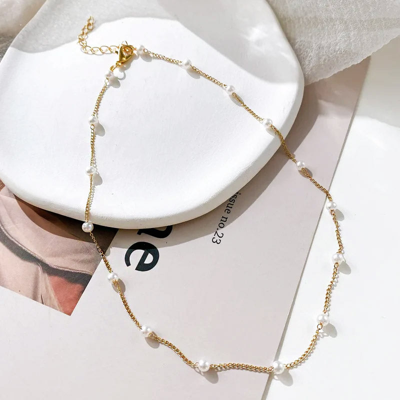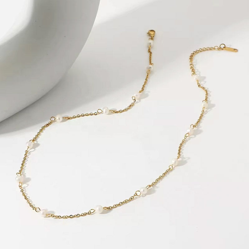Stainless steel gold plated pearl charms link chain necklace Set of 5