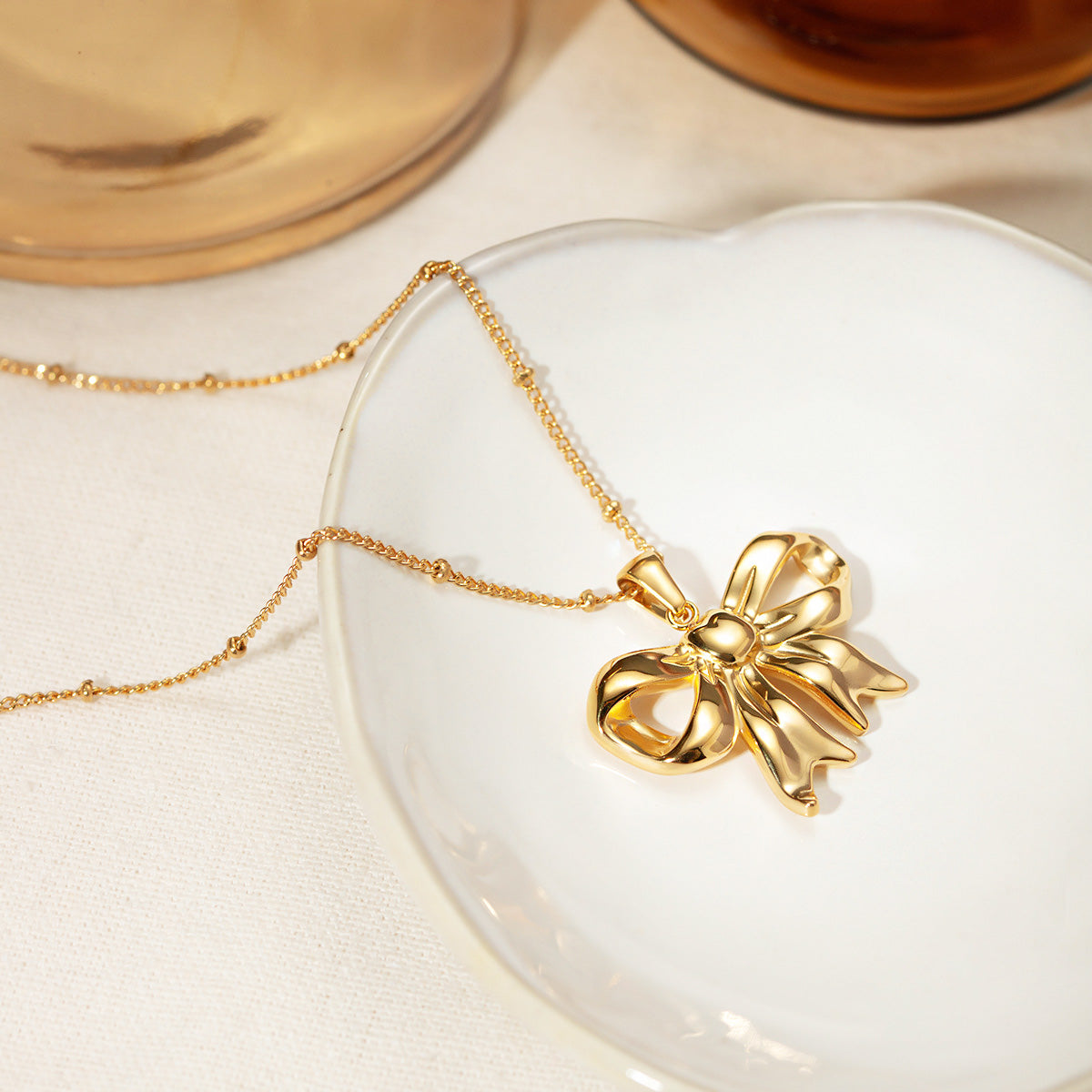 Stainless steel gold plated ribbon bow pendant necklace Set of 5