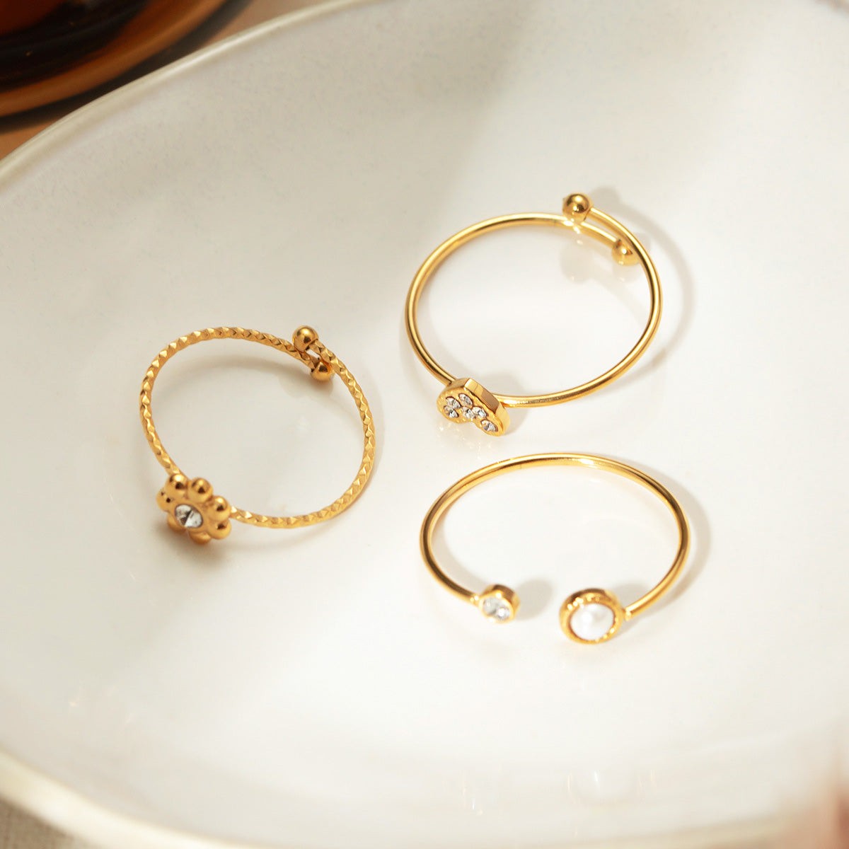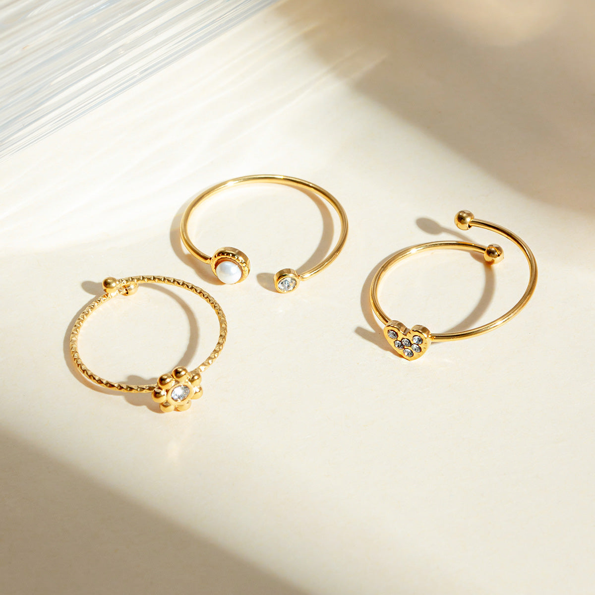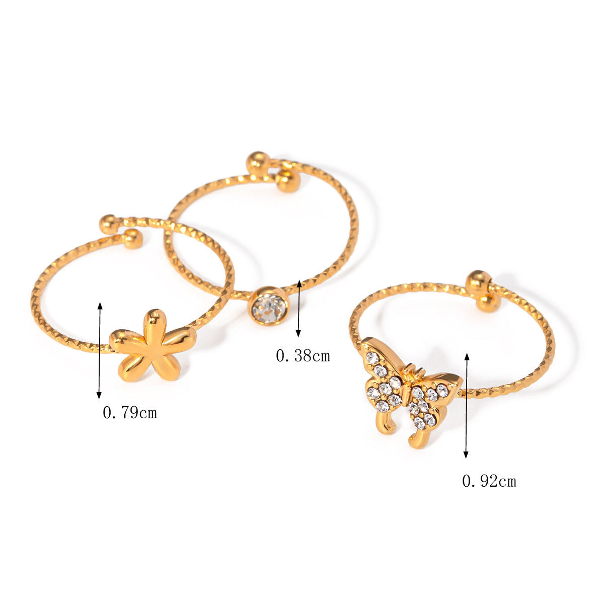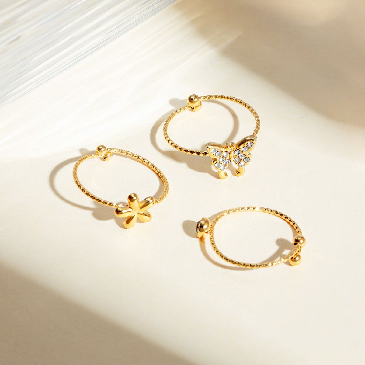 Stainless steel gold plated teen girls adjustable flower butterfly heart dainty rings set (5 sets)