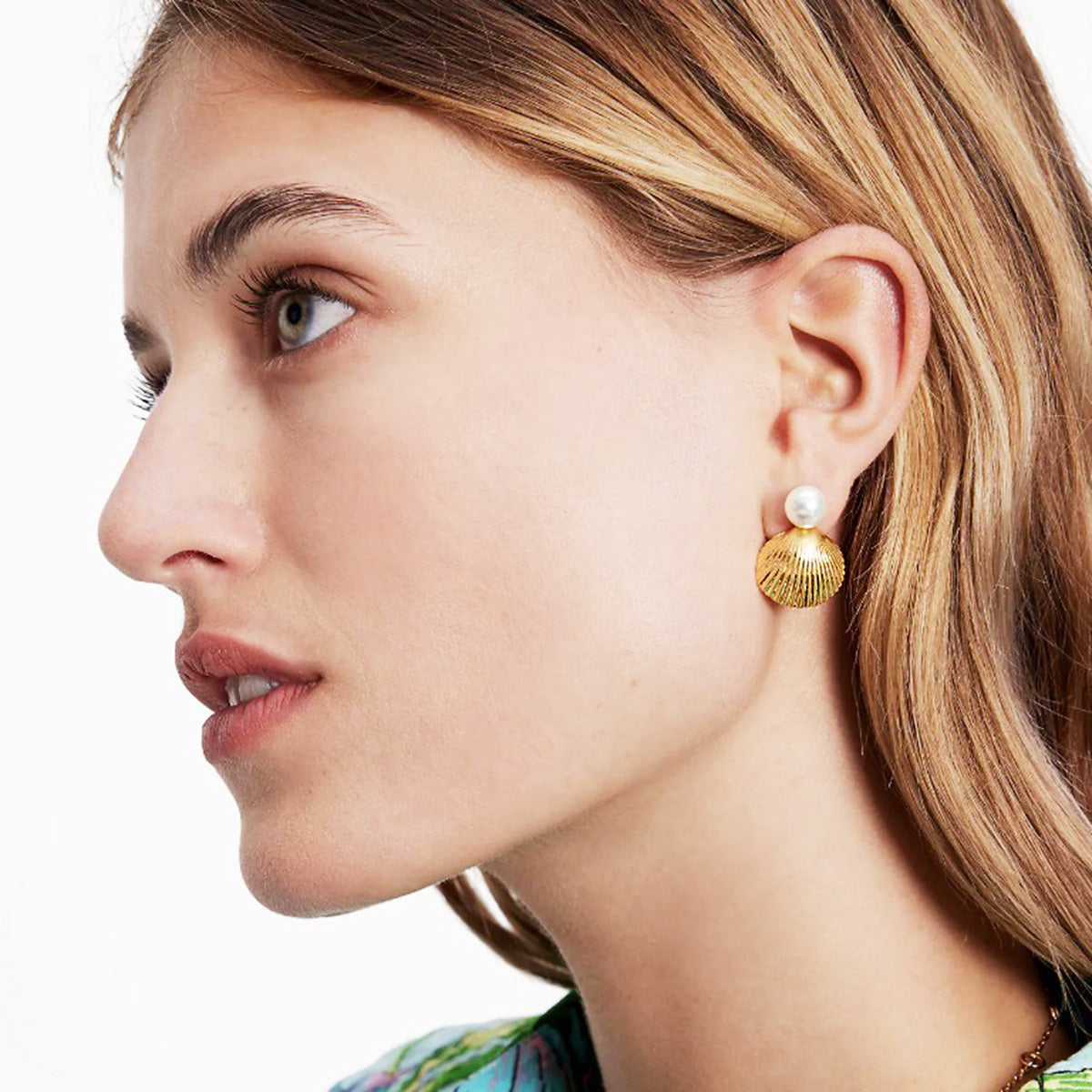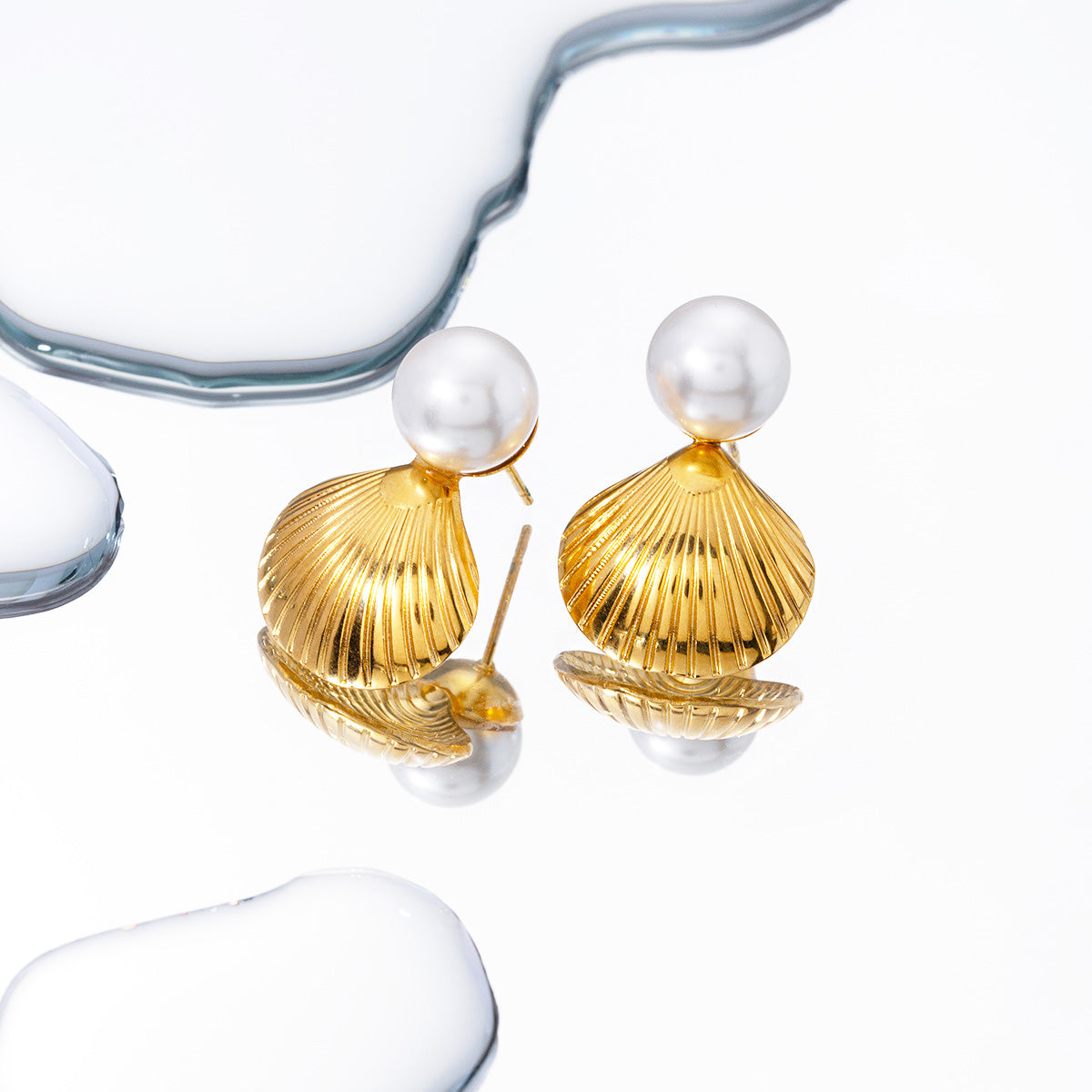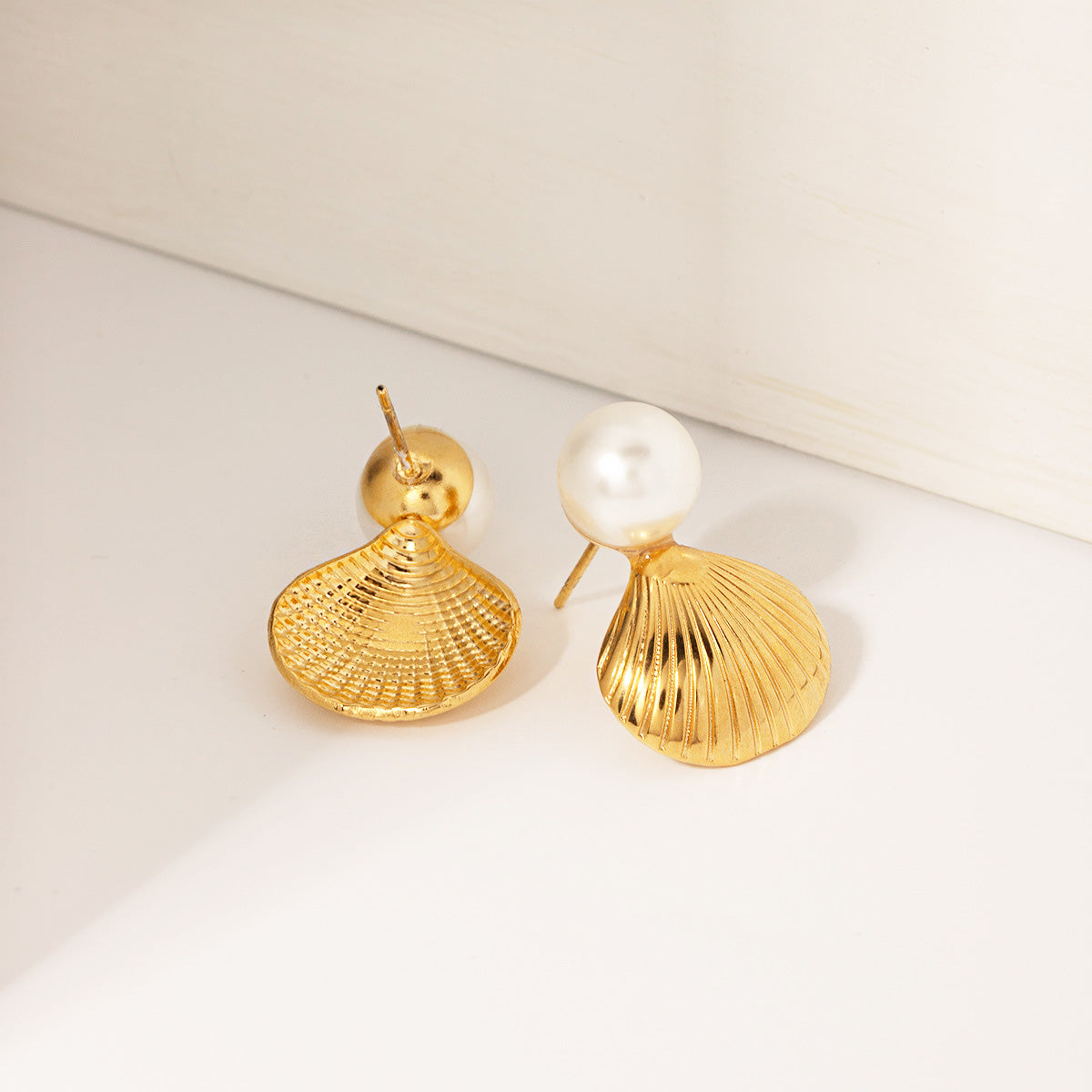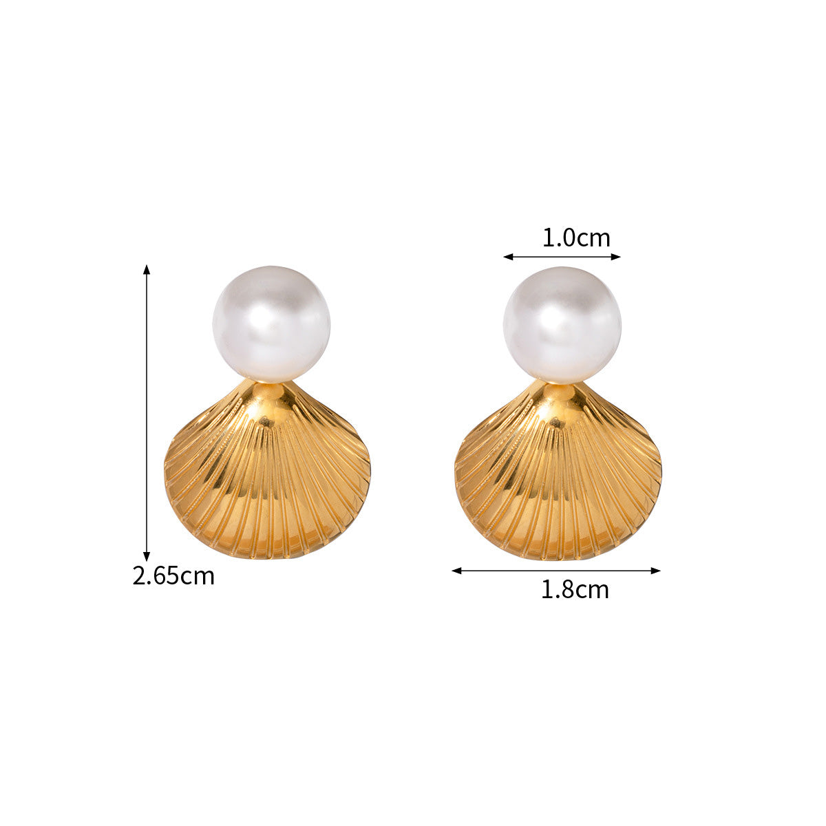 Stainless steel gold shell shape single pearl stud earrings (5 pairs)