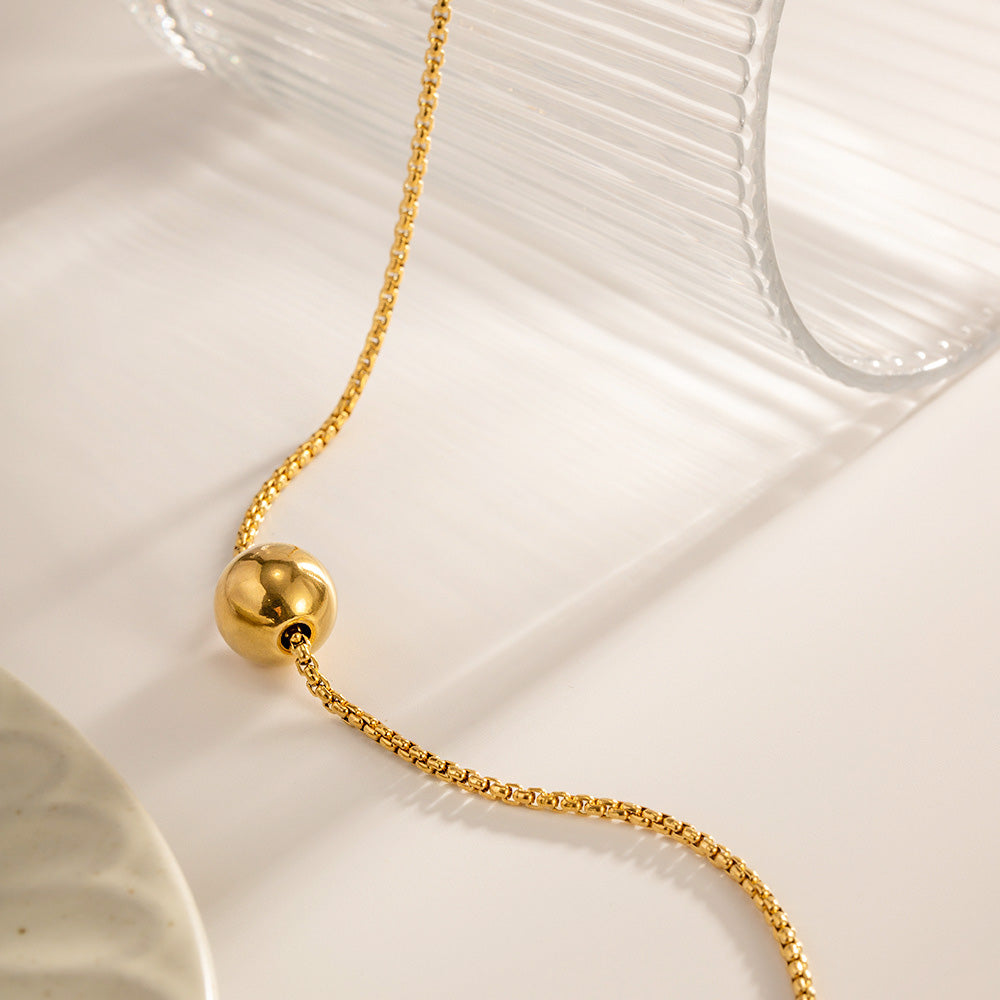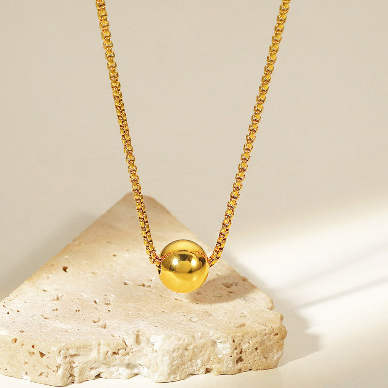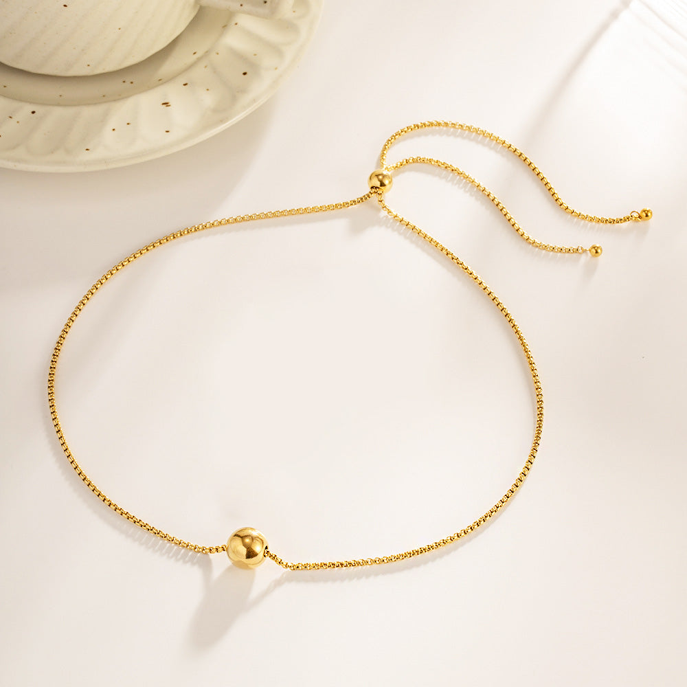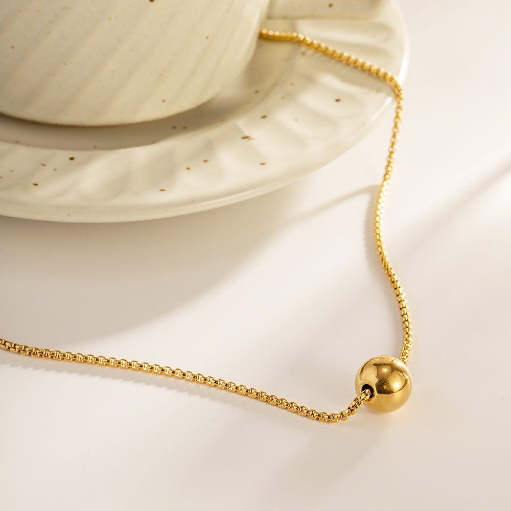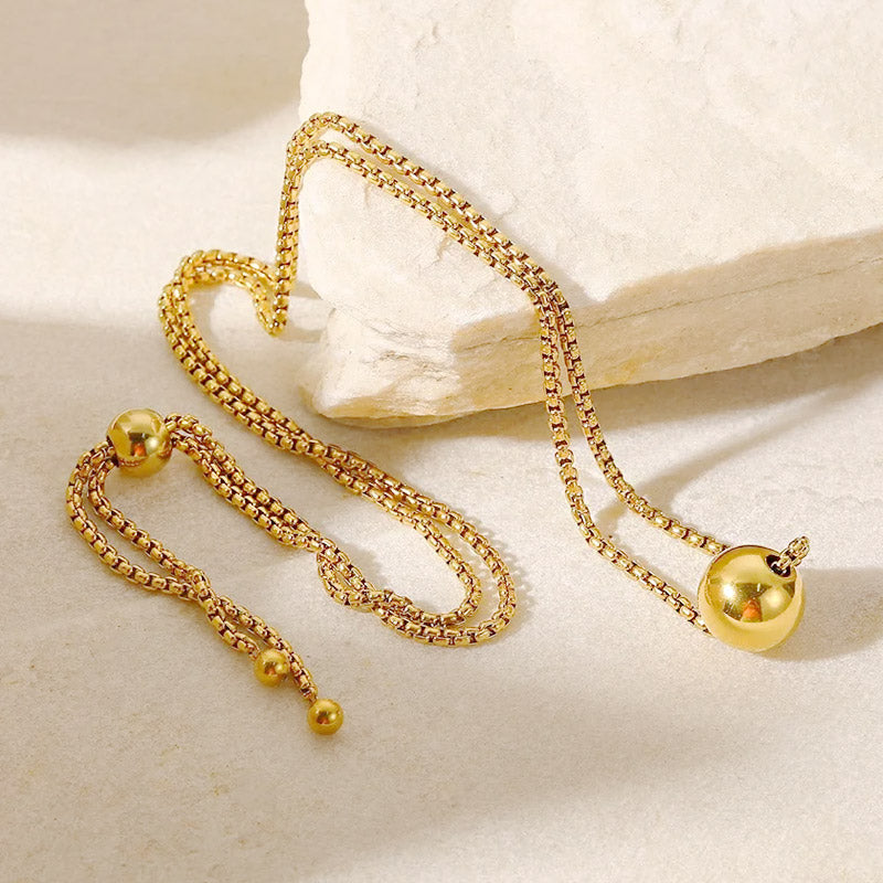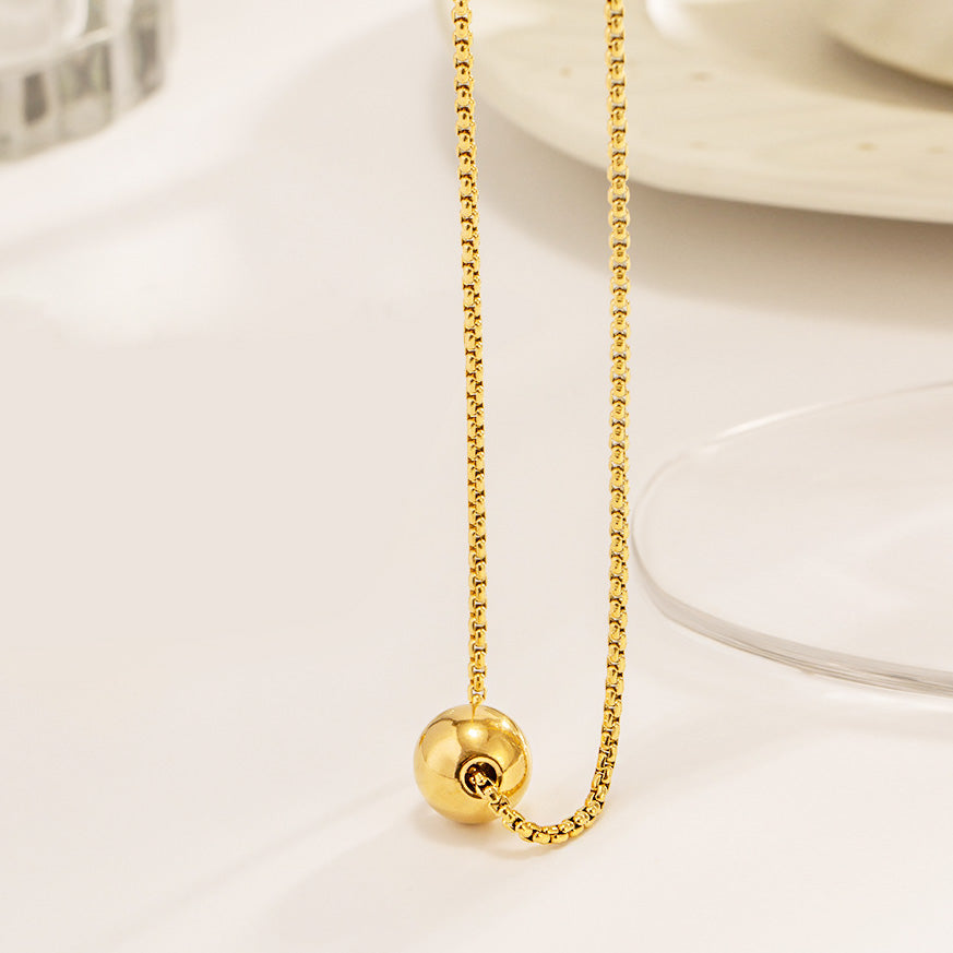 Stainless steel gold single ball pendant pull box chain necklaces Set of 5