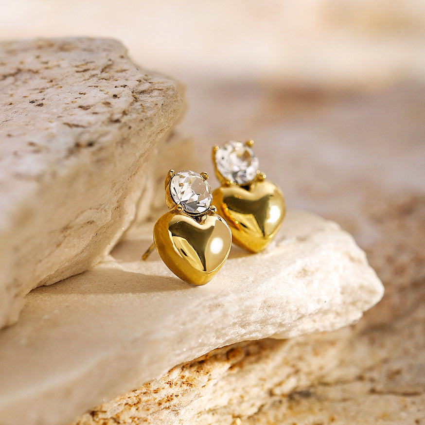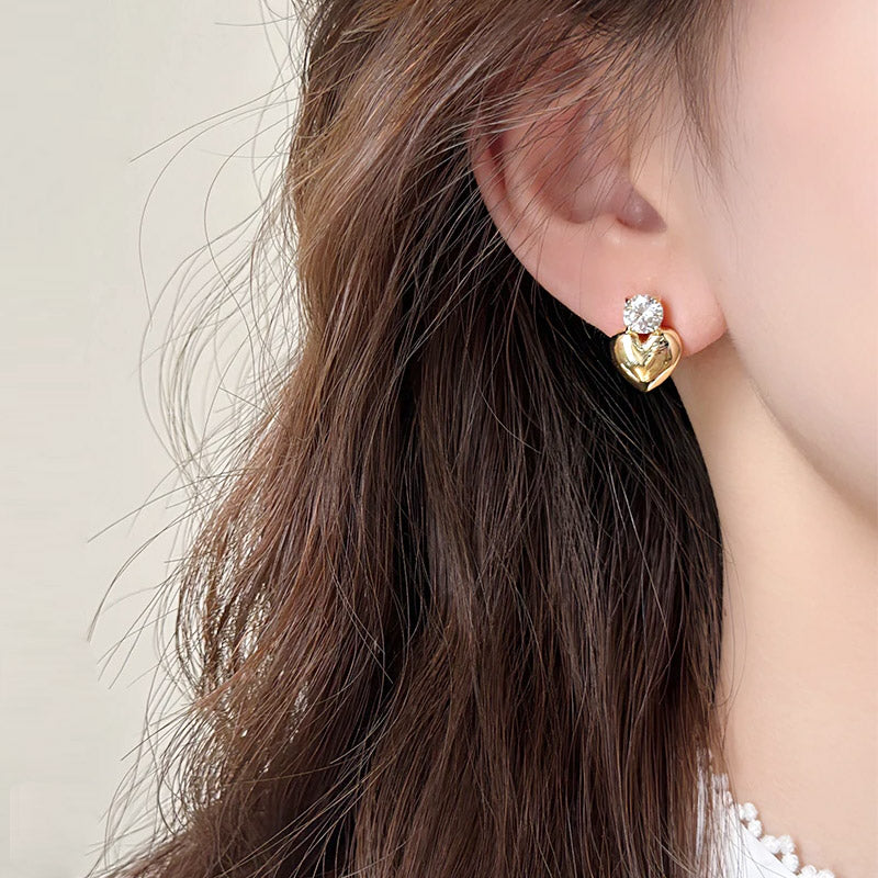 Stainless steel gold single zircon heart stud earrings (5 pairs)