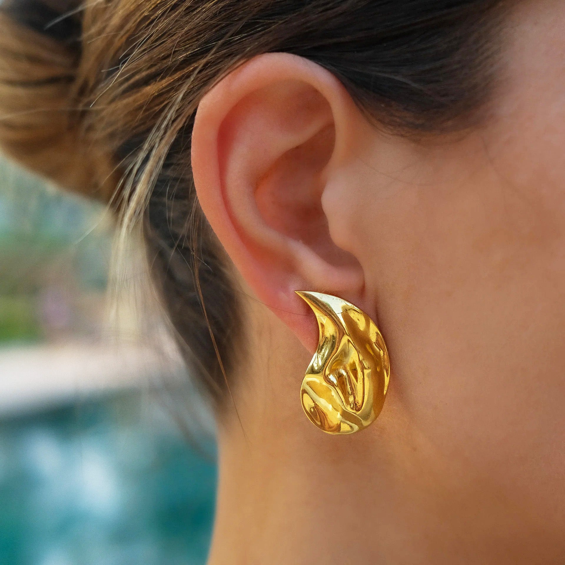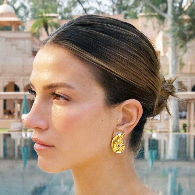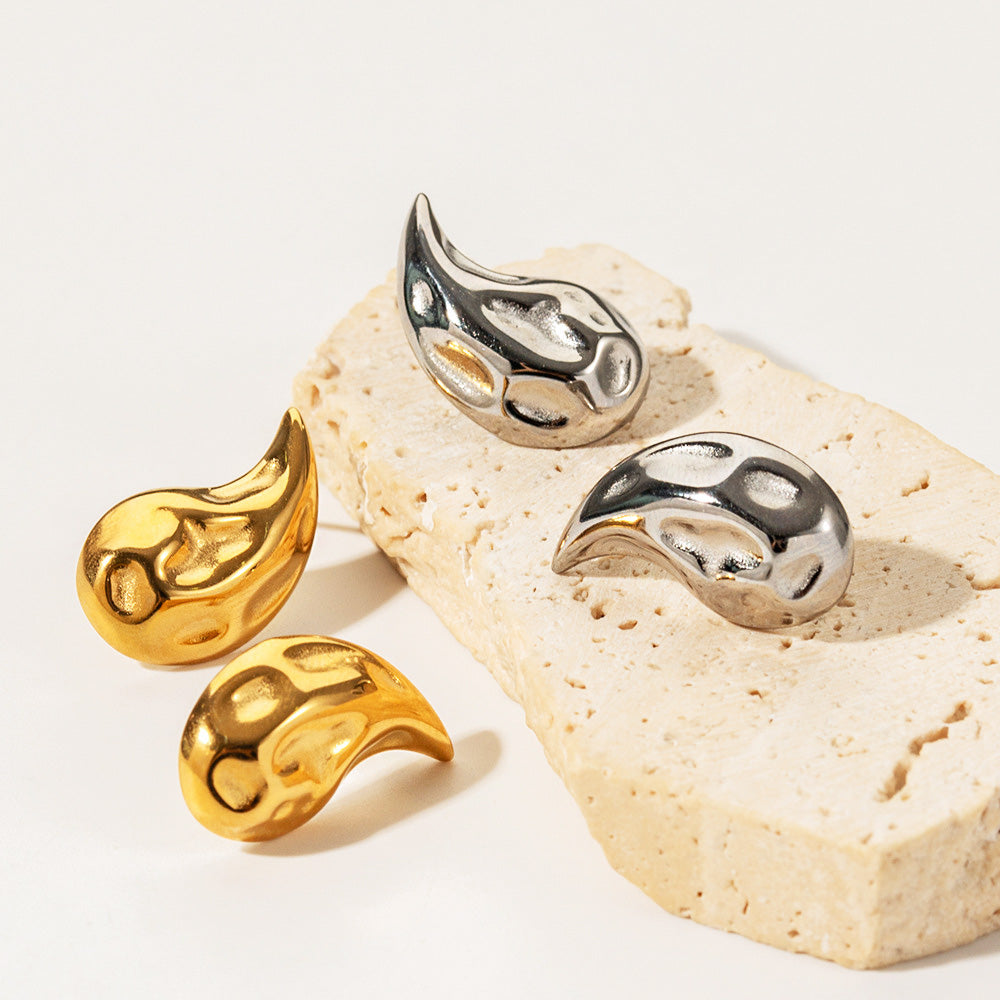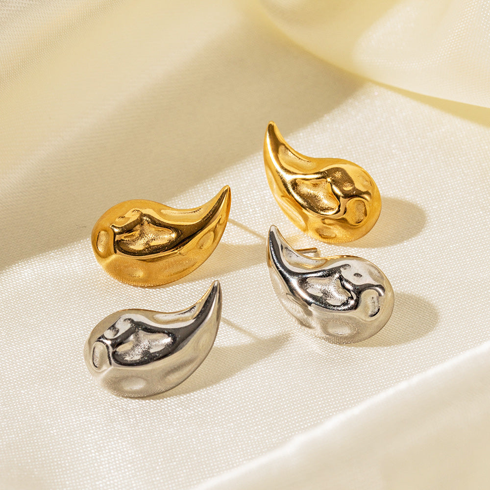 Stainless steel hammered texture water drop shape stud earrings (5 pairs)