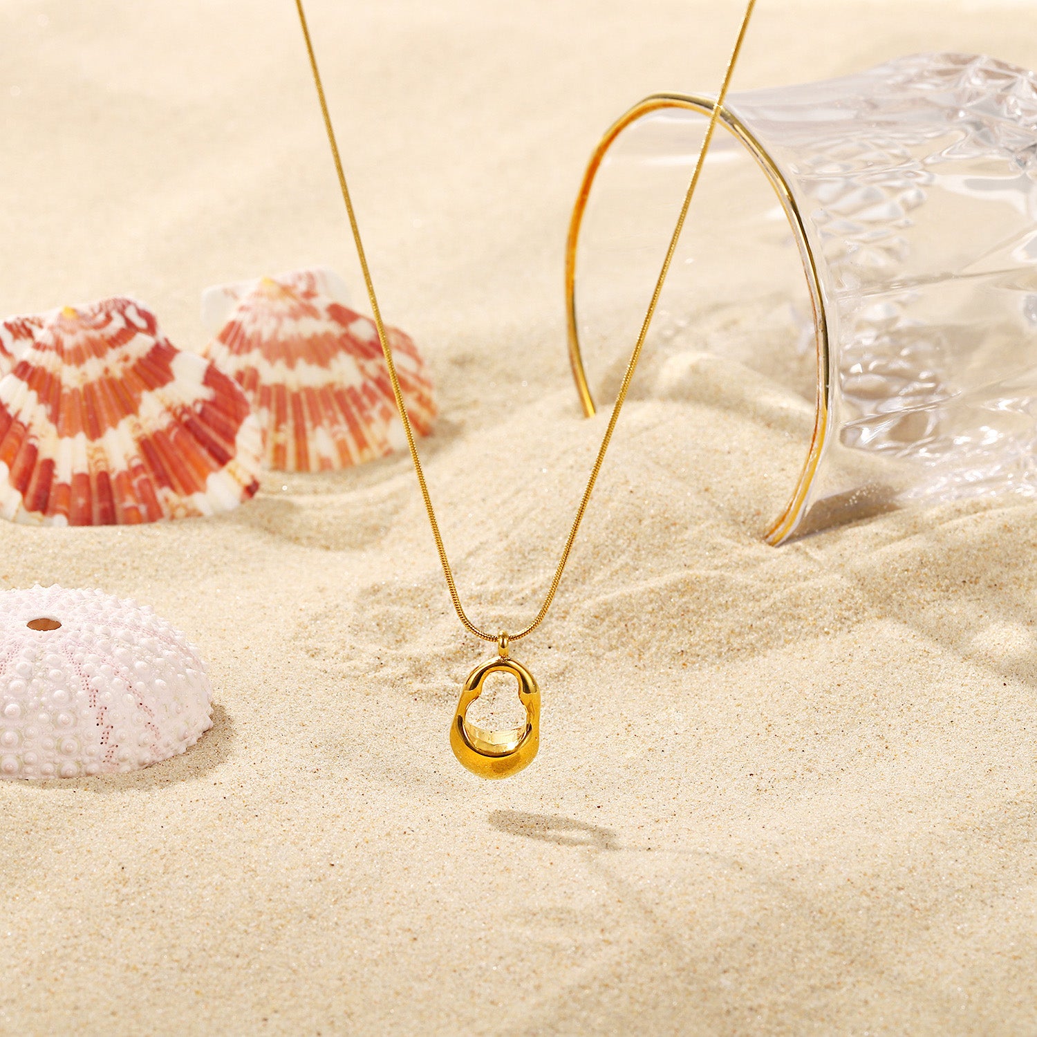 Stainless steel hollow oval geometric shape pendant necklaces Set of 5