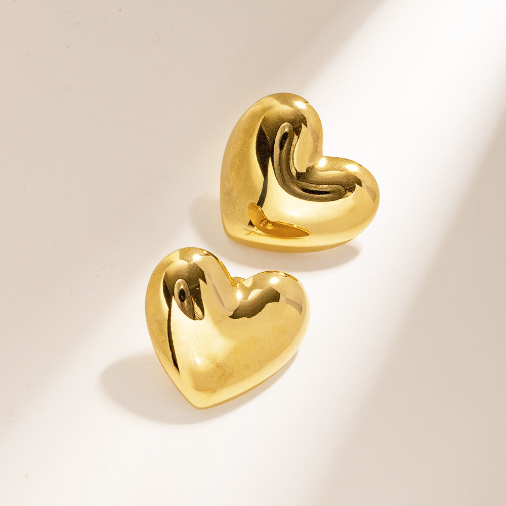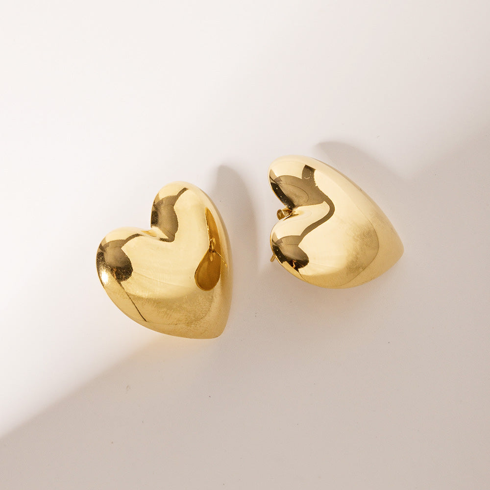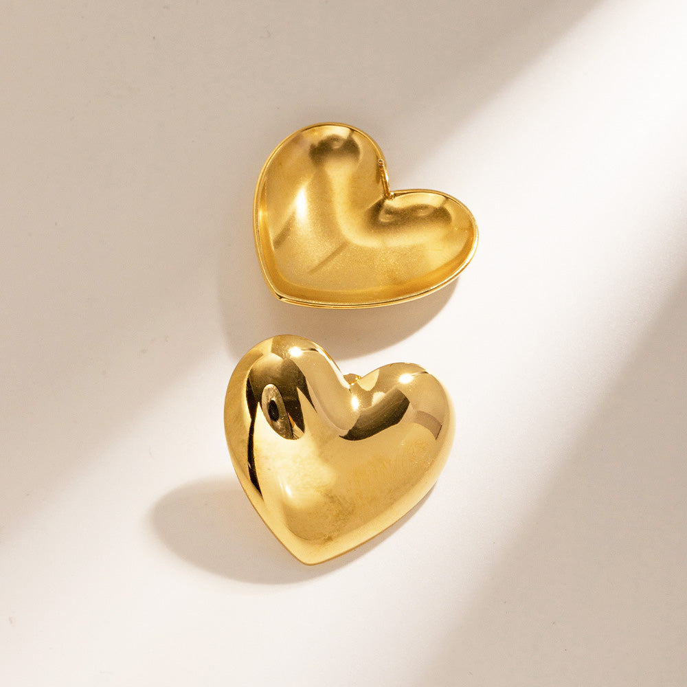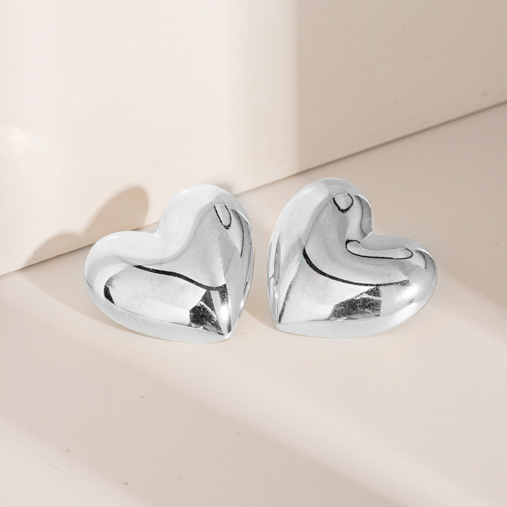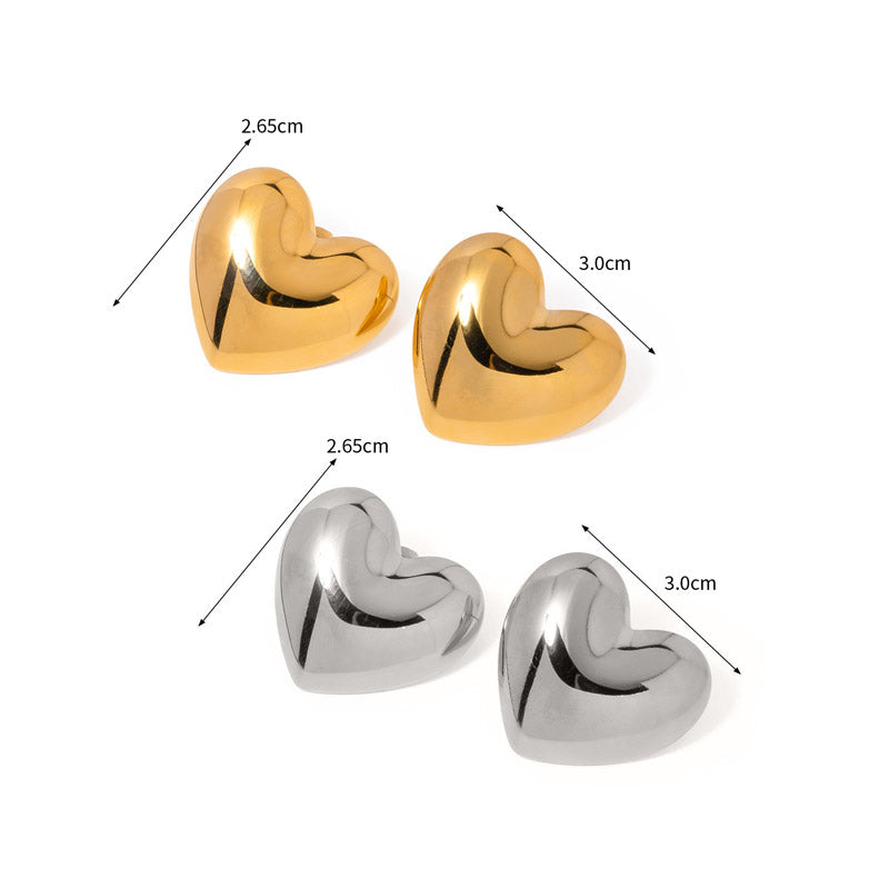Stainless steel hypoallergenic chunky big heart stud post earrings (5 pairs)