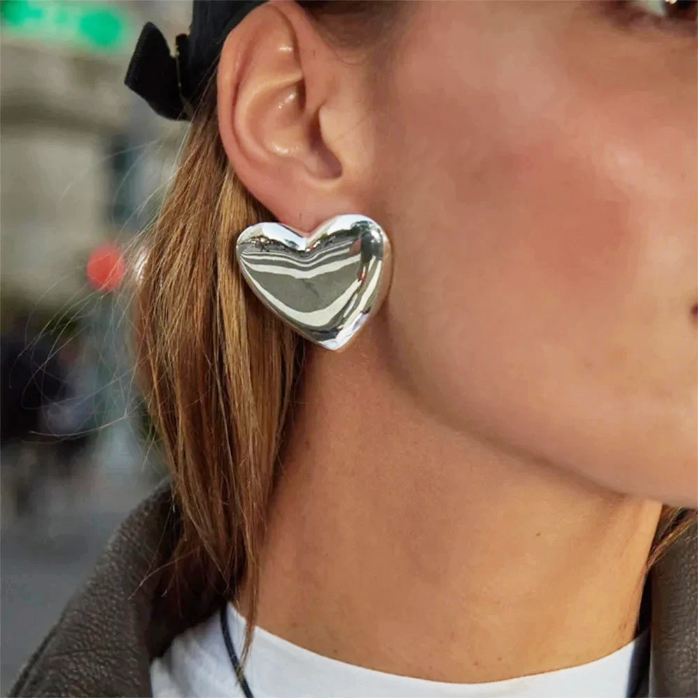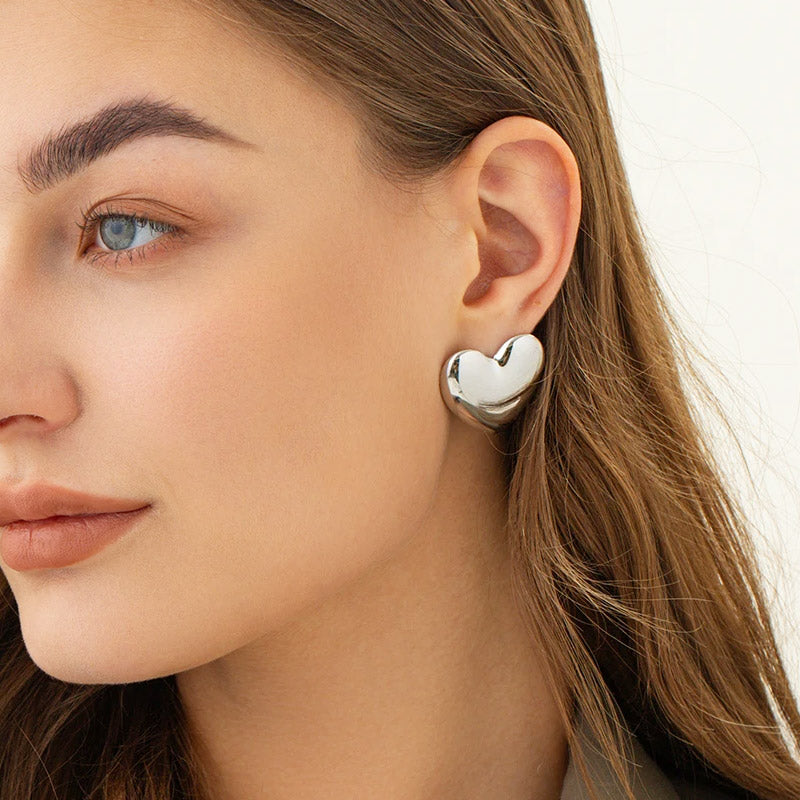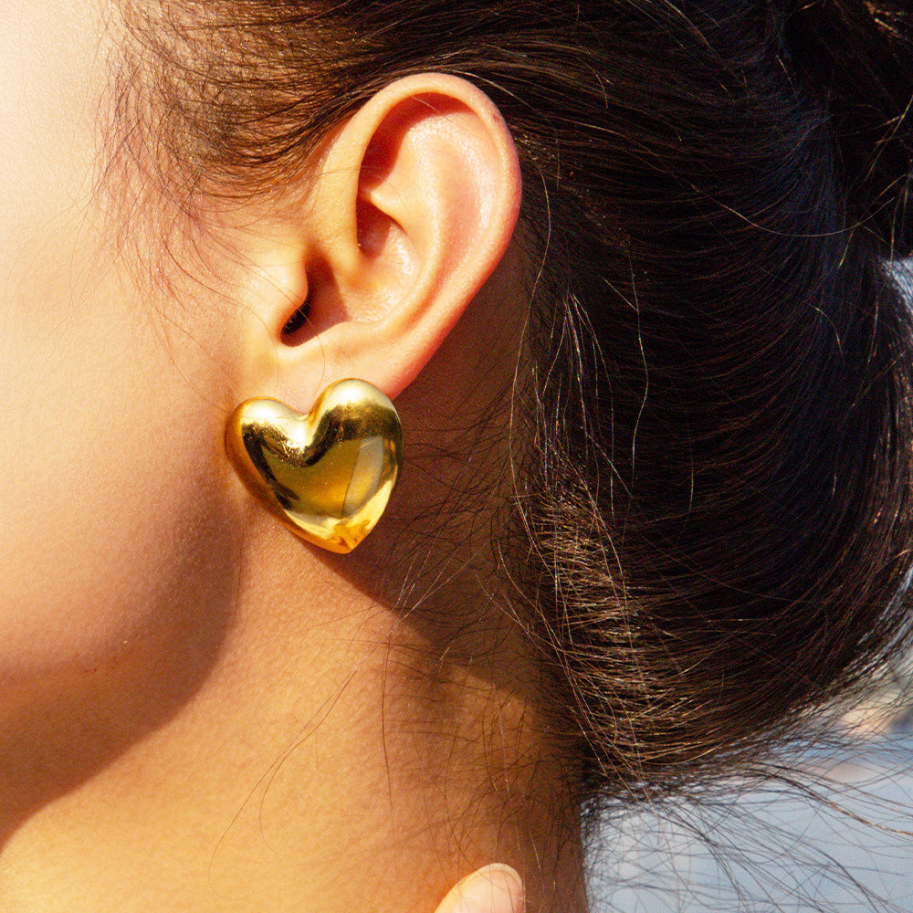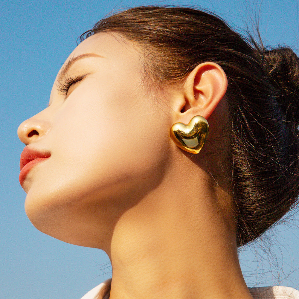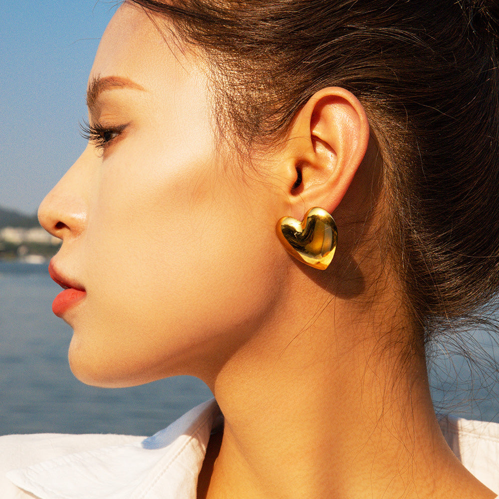 Stainless steel hypoallergenic chunky big heart stud post earrings (5 pairs)
