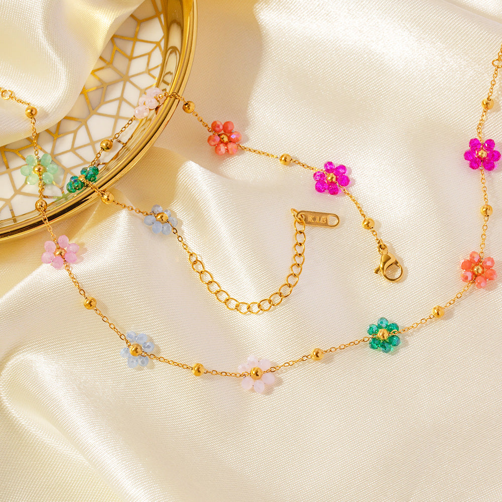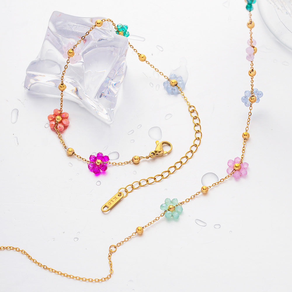 Stainless steel jewelry colorful floral flower charms chain necklaces Set of 5