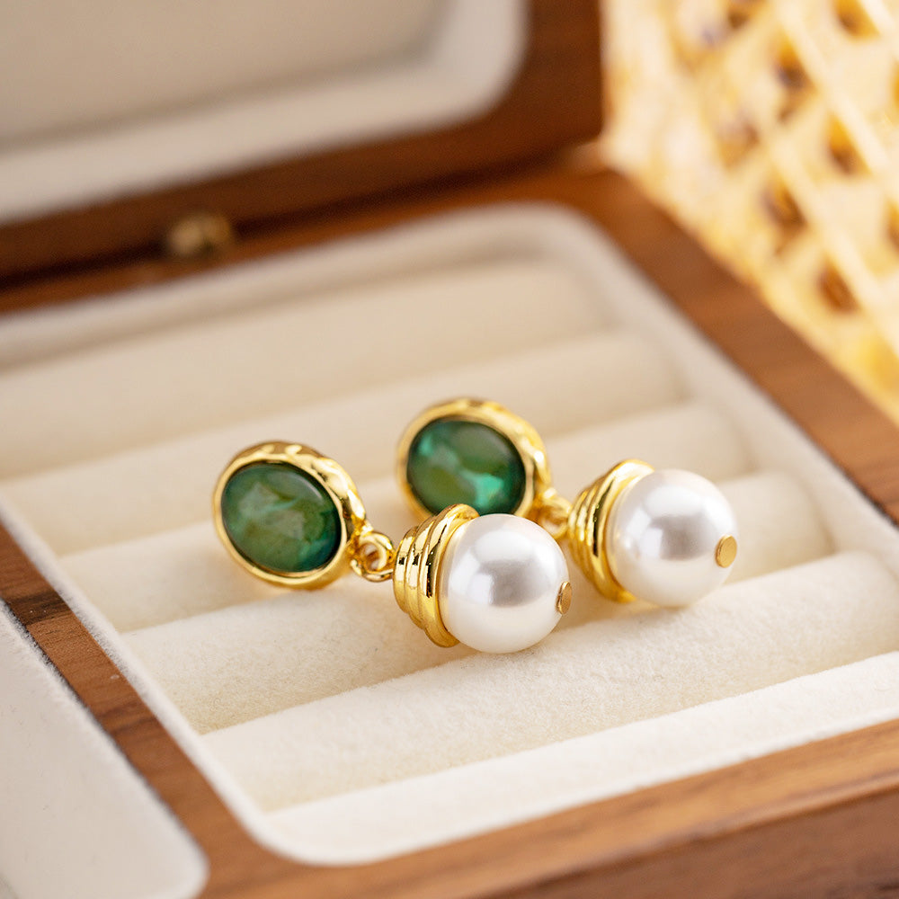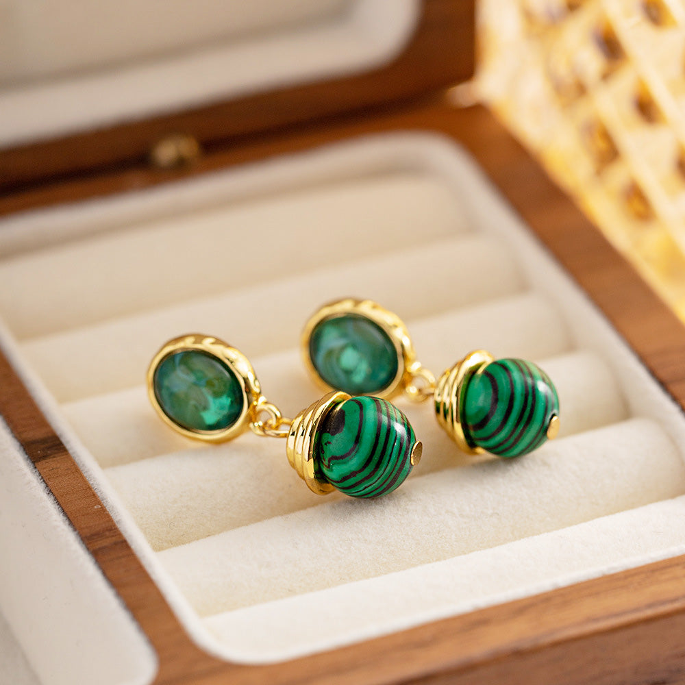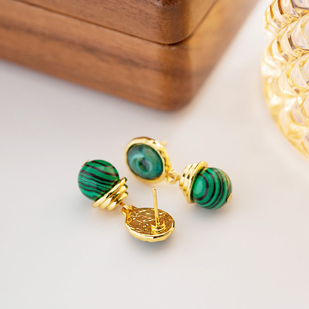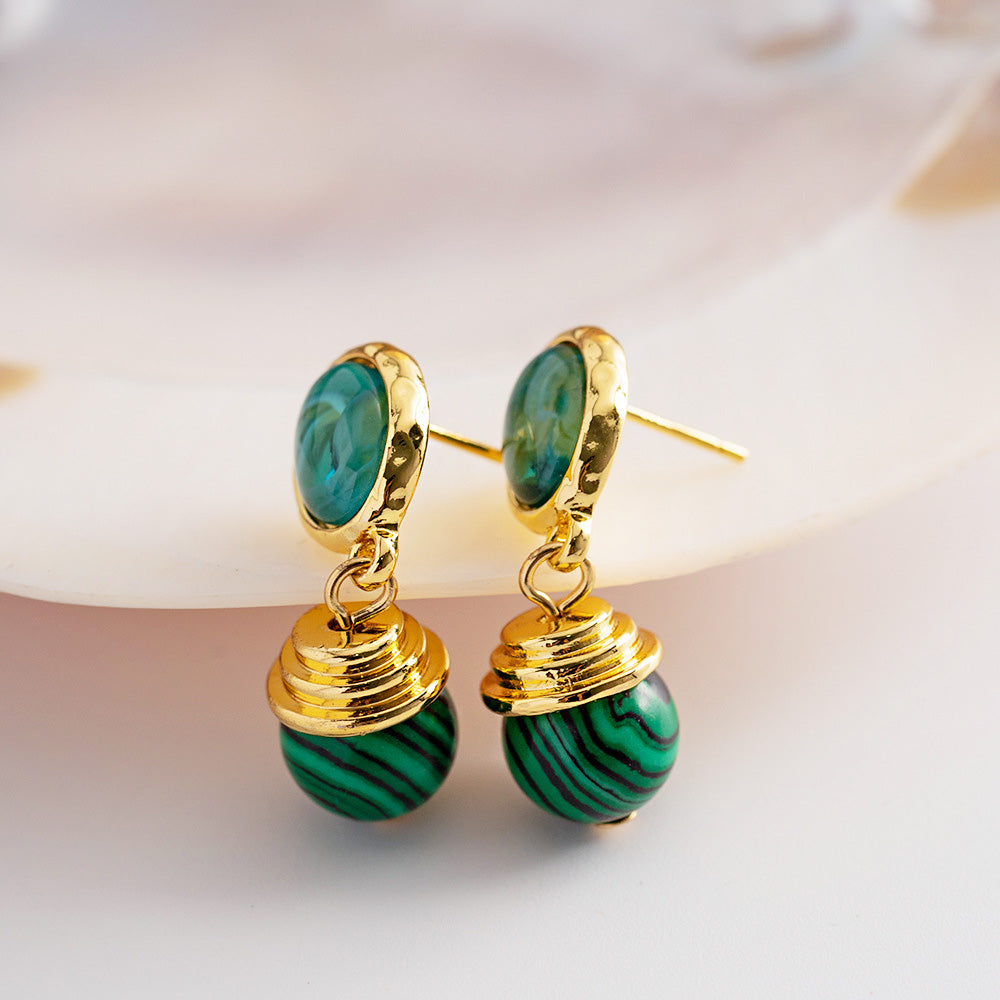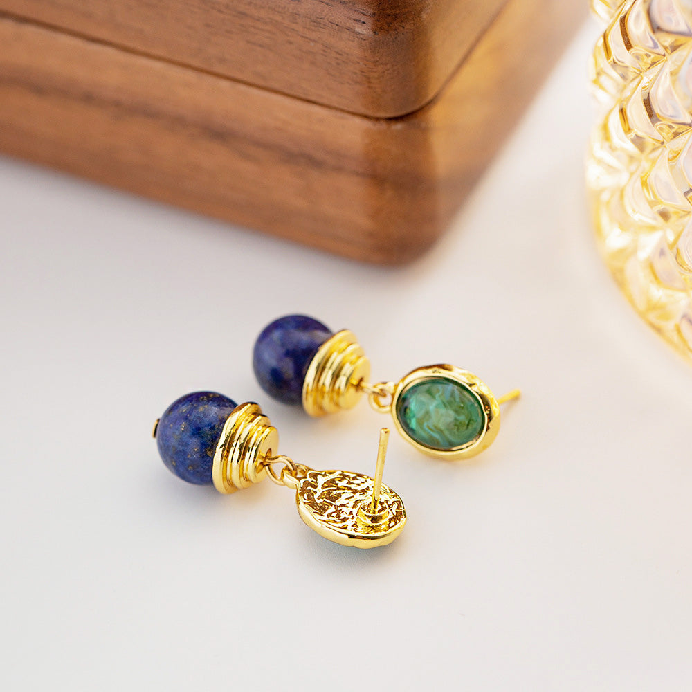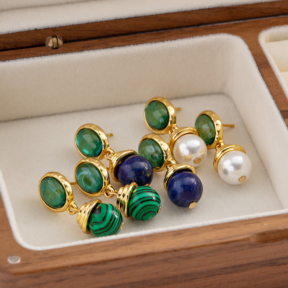 Stainless steel natural stone Lapis Lazuli Malachite drop earrings (5 pairs)
