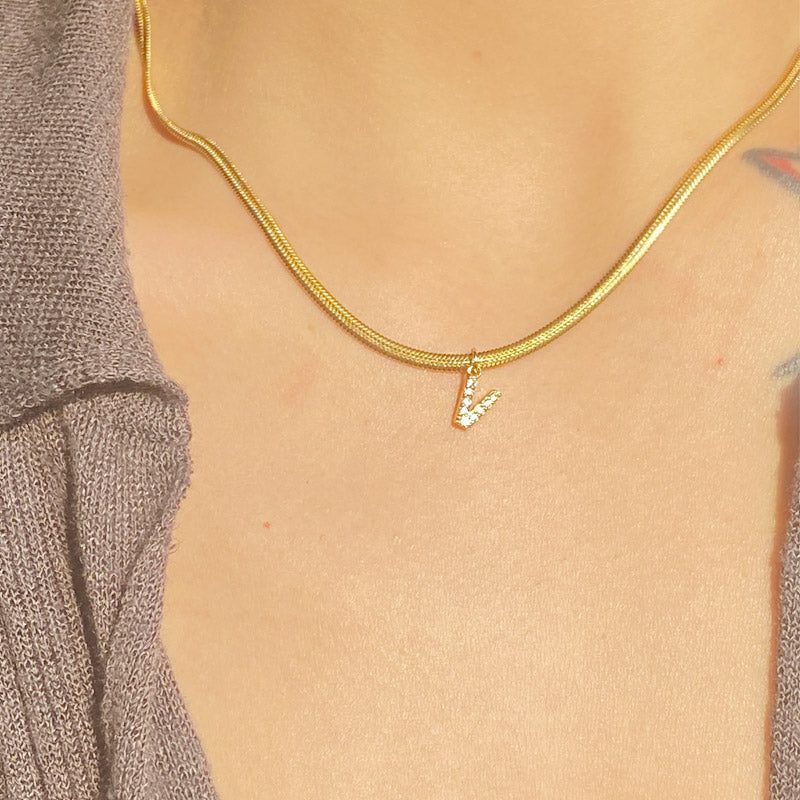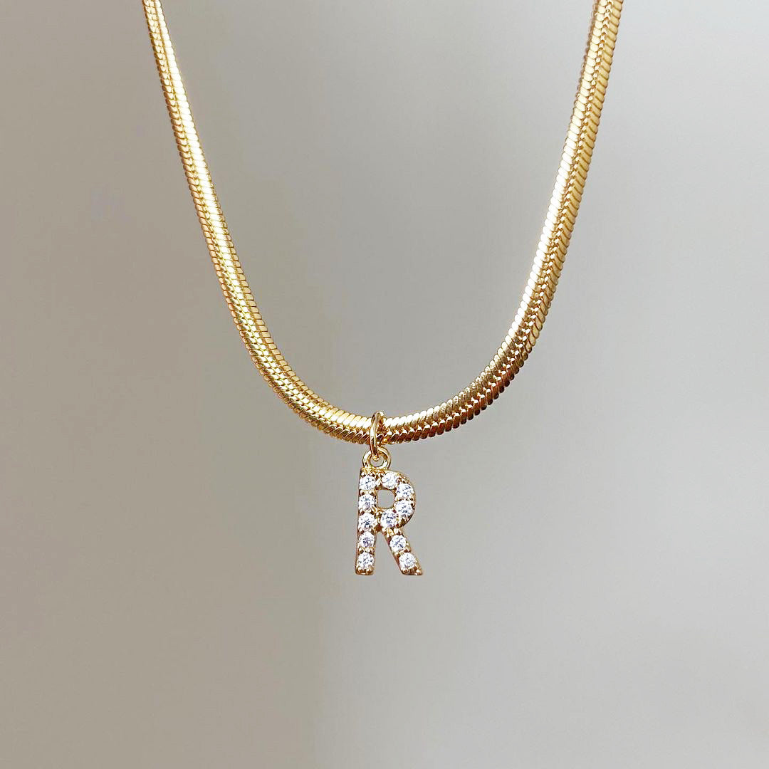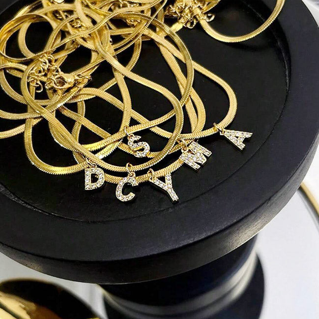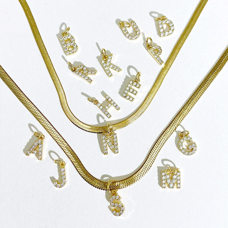 Stainless steel pave A-Z letter initial 3mm snake chain necklace Set of 5