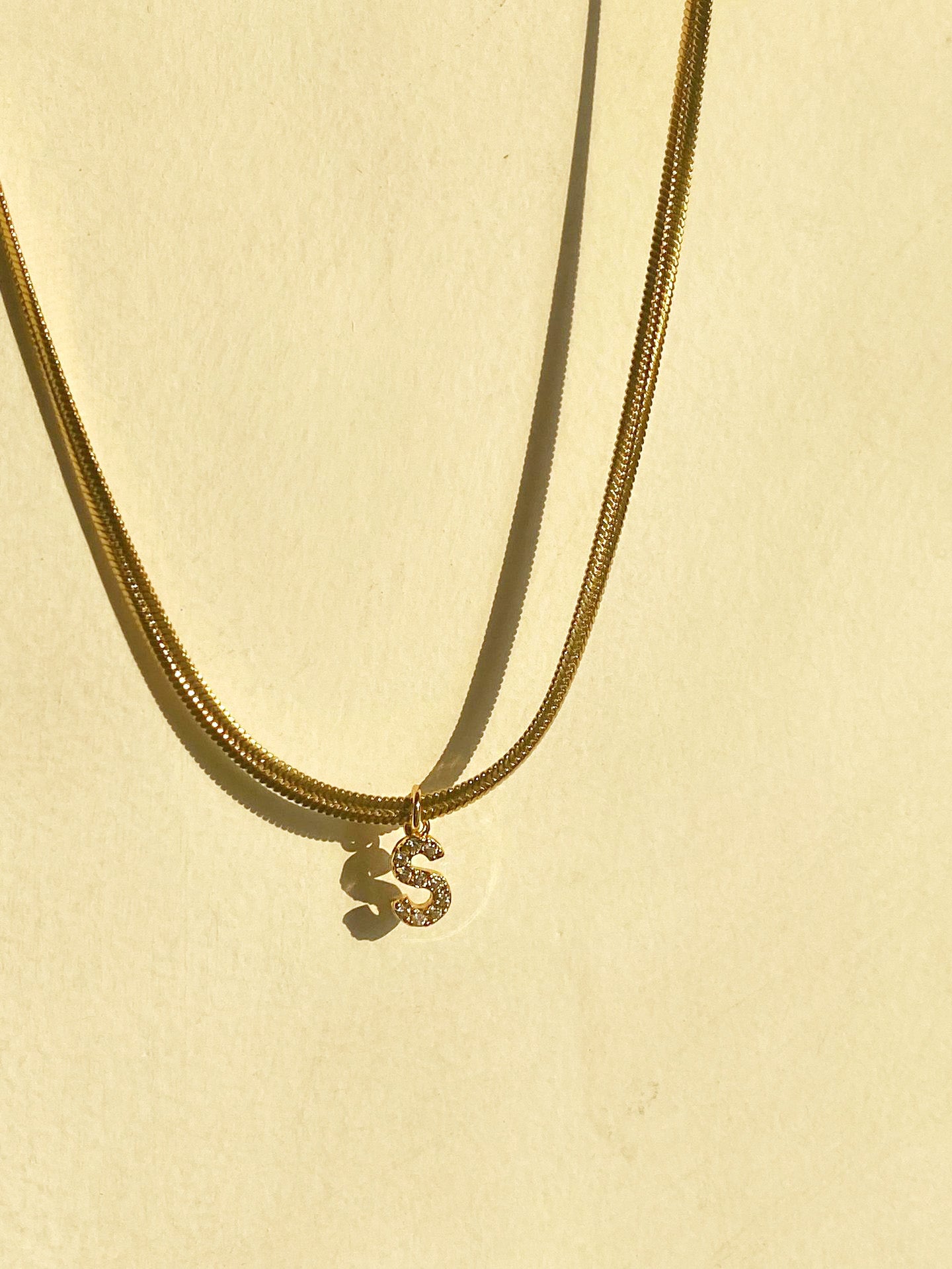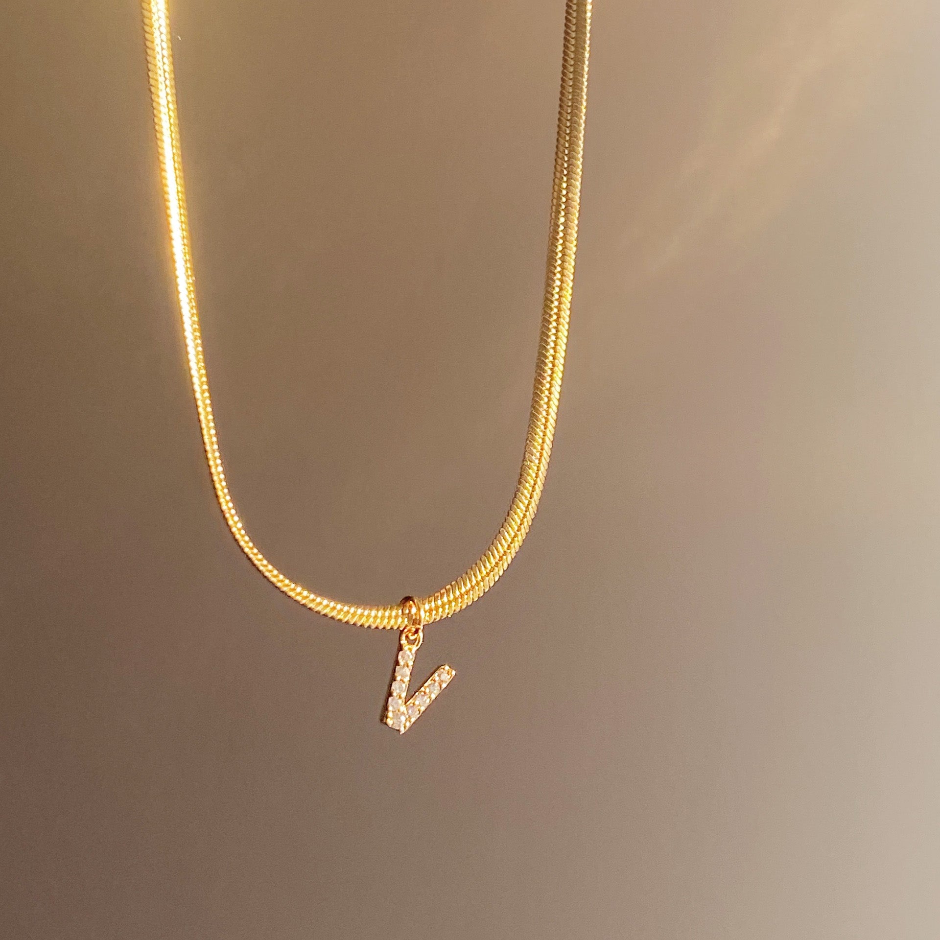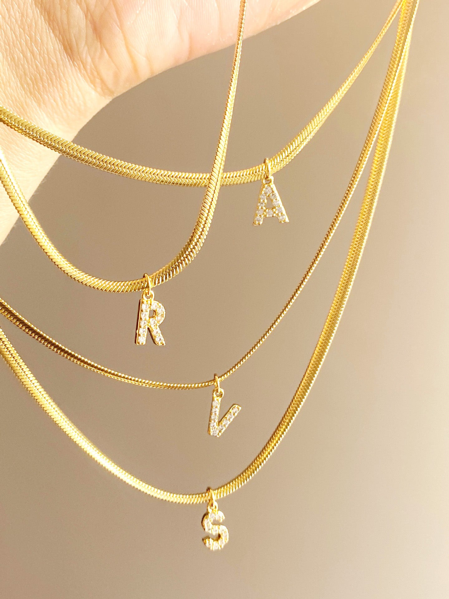Stainless steel pave A-Z letter initial 3mm snake chain necklace Set of 5